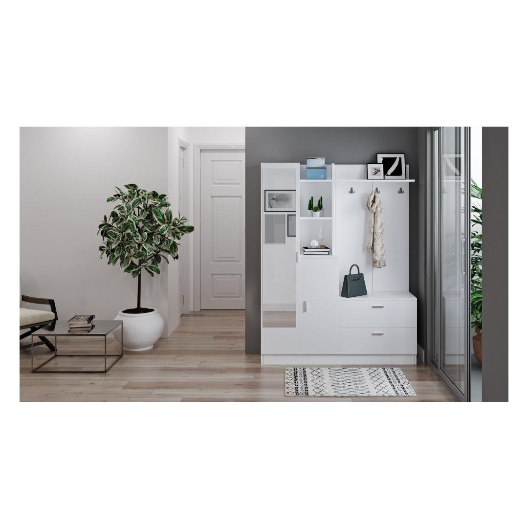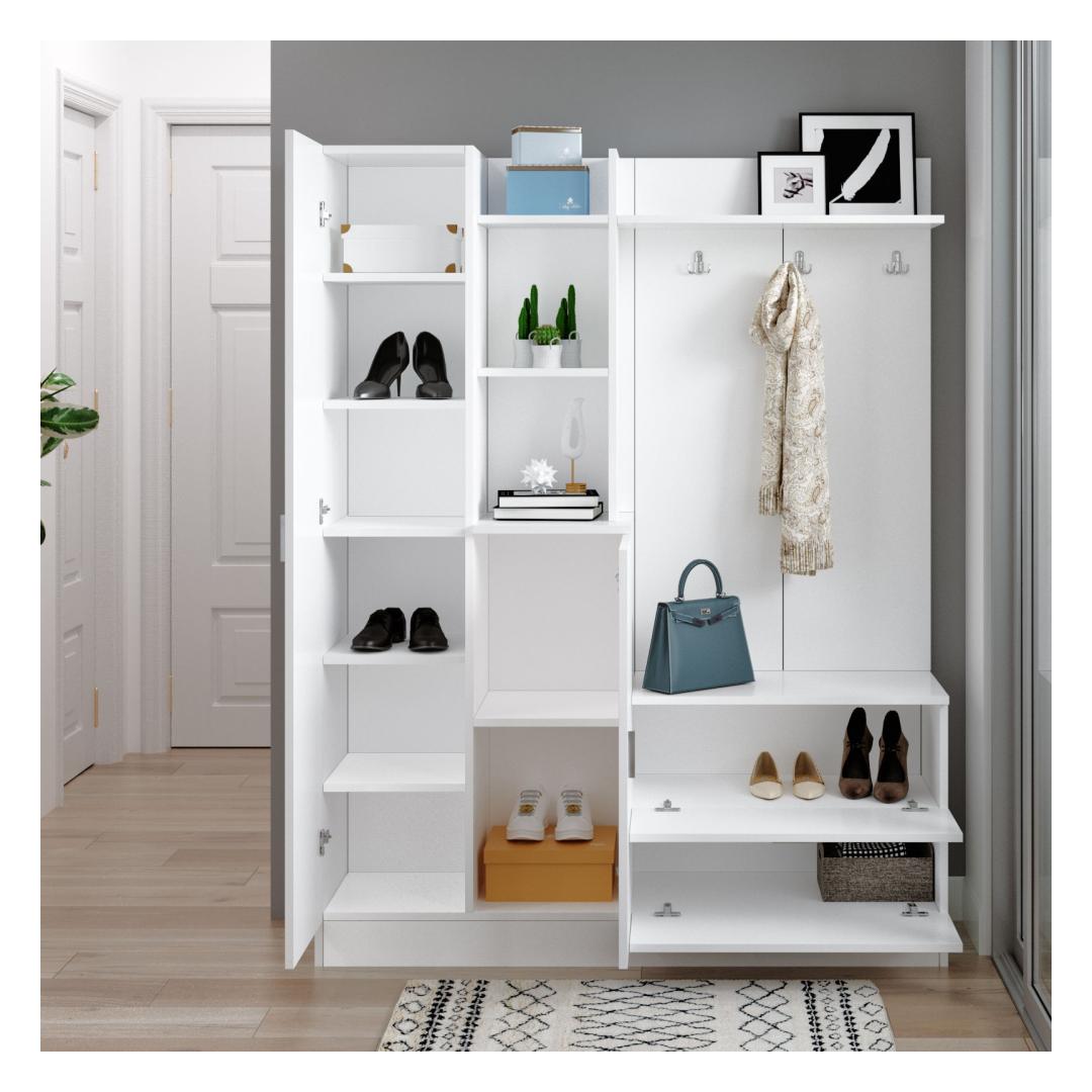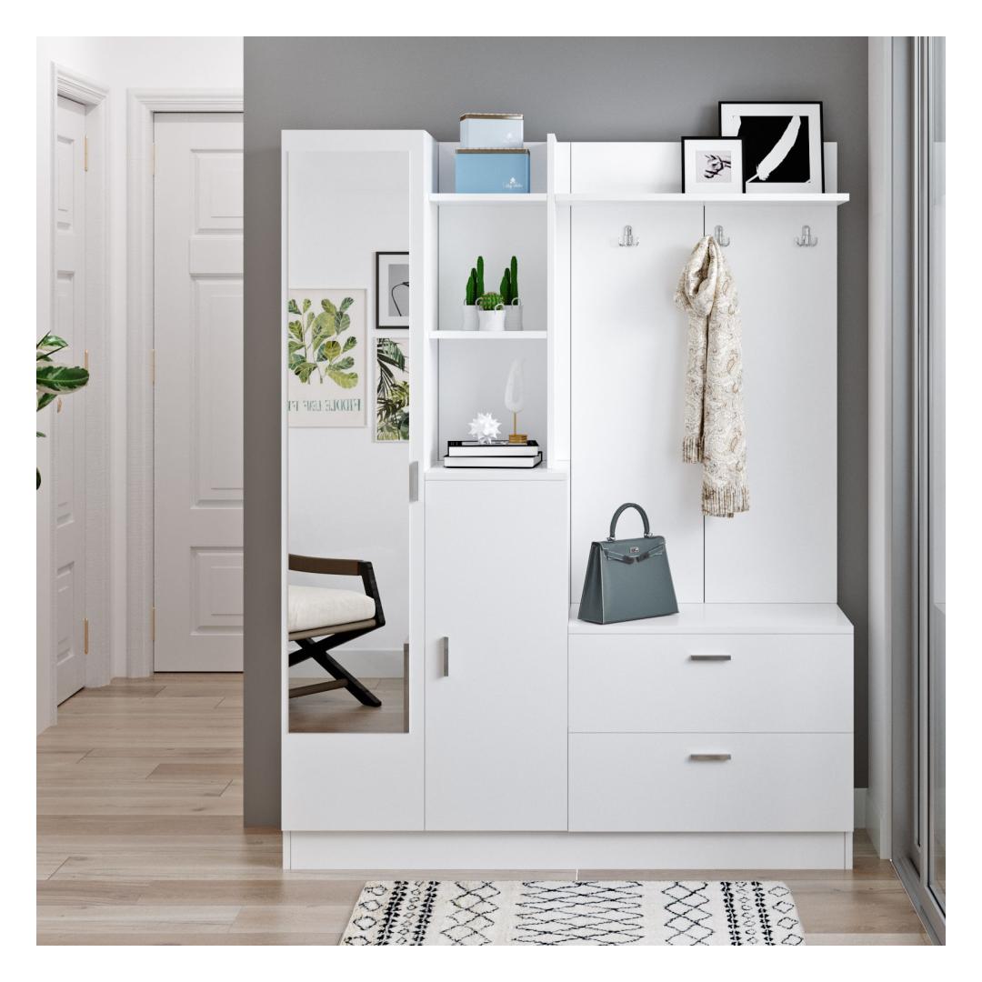 Transformeeri oma sissepääs elegantselt ja stiilseltTutvustame meie uimastavat esiku stendi, mis on teie kodu kohustuslik täiendus, mis tõstab teie esiku kohe esile. See ülima täpsusega ja detailidele tähelepanu pöörates valminud esikust on kujundatud nii, et see avaldab muljet oma soliidse värvi ja kaasaegse uudse kontseptsiooniga. Võrratu vastupidavus ja kvaliteetValmistatud 100% melamiiniga kaetud puitlaastplaadist, on see saalihoidja valmistatud kestma. 18 mm paksus tagab erakordse tugevuse, pakkudes usaldusväärset ja kauakestvat mööblit teie koju.Looda külalislahke õhkkondSelle elegantse ja kaasaegse disainiga saalihoidja lisab vaevata elegantsi igasse ruumi. Statiivi valge(d) värv(id) kiirgavad puhtuse ja värskuse tunnet, luues külalistele külalislahke atmosfääri. Jääge organiseeritud ja segadustetaLaius 140cm, kõrgus 181. 8cm ja sügavus 36. 8cm, pakub see esiku statiiv piisavalt hoiuruumi, et hoida teie esikus korrastatud ja korratu. Riputage mantlid, sallid ja mütsid tugevate konksude külge, samal ajal kui ruumikas ülemine riiul on ideaalne koht dekoratiivsete esemete väljapanekuks või igapäevaste esemete hoidmiseks. Lihtne kokkupanek ja hooldusMeie esiku stend on mõeldud muretuteks kokkupanekuteks, mis võimaldab teil selle eeliseid kiiresti nautida. Lisaks tagab melamiinkate lihtsa hoolduse, mistõttu on lihtne hoida oma saalihoidja vaevata uuena ja puhtana. Tehnilised üksikasjad:Tootetüüp: Toode on mõeldud kasutamiseks, kui see ei ole vajalik, kuid see on võimalik: Toode: Saalide stendMaterjal: Materjal: Materjal: Materjal: Materjal: Materjal: Materjal: Materjal: materjal: 100% melamiiniga kaetud puitlaastplaatPaksus: 18mmLaius: 140cmKõrgus: 181. 8cmSügavus: 36. 8cmVärv: valgeKontseptsioon: Värviline värv, kaasaegne - uudsus Värv: White