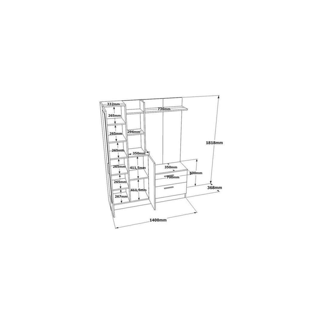 Width: 140 cm Height: 181,8 cm Depth: 36,8 cm