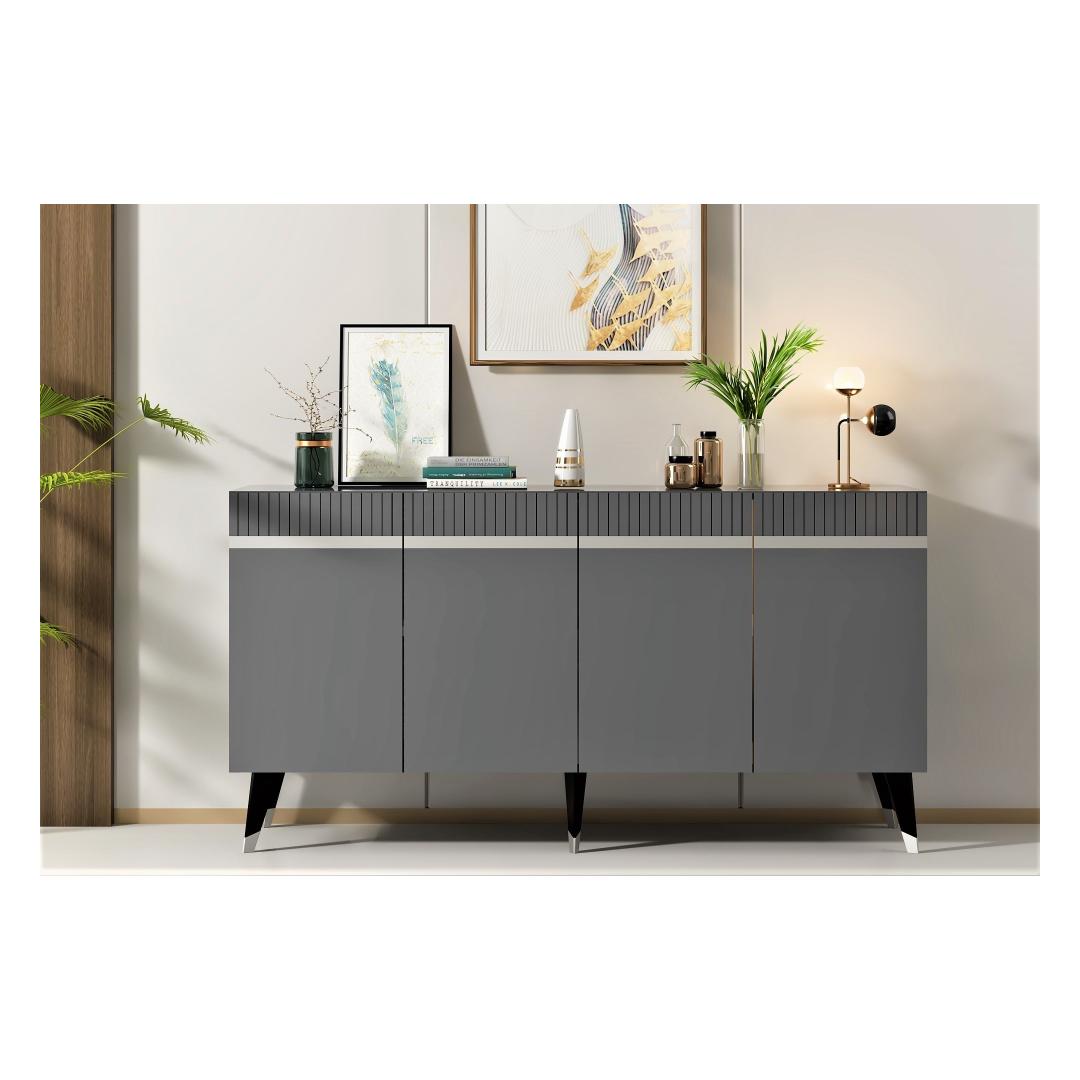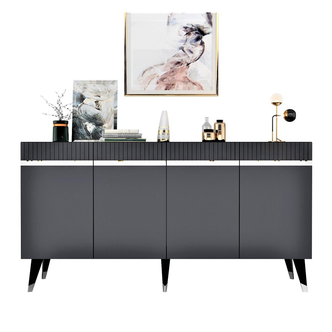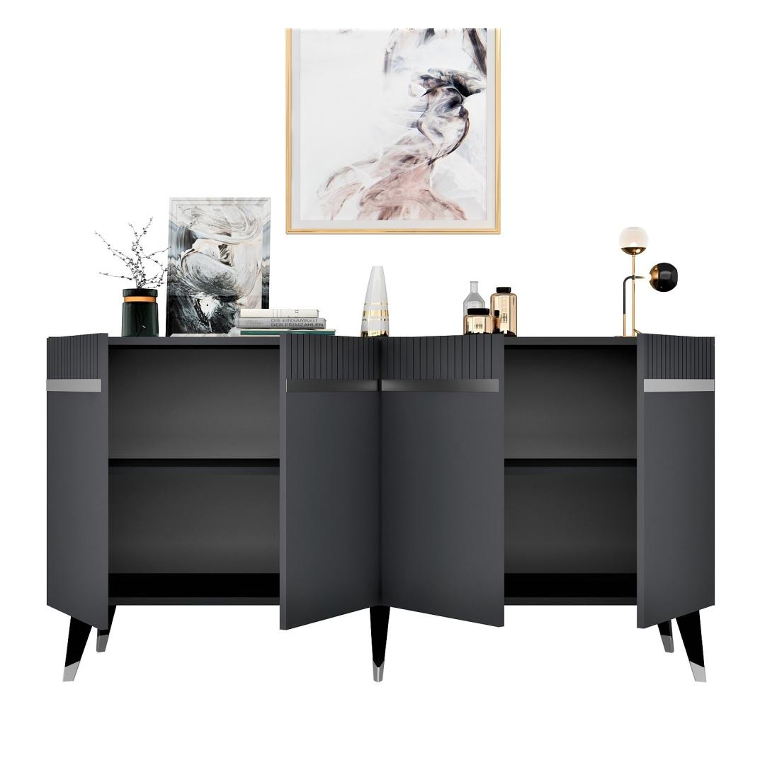 Tutvustame meie uimastavat ja mitmekülgset konsooli, mis on loodud lisama elegantsust ja rafineeritust igasse ruumi. See äärmiselt hoolikalt ja detailidele tähelepanu pöörates valmistatud konsool on stiili ja funktsionaalsuse kehastus. Vabastage elegantsi jõudSelle elegantse ja moodsa disainiga konsool on tõeline väljapaistev ese, mis tõstab koheselt teie kodu atmosfääri. Antratsiidi ja hõbedase värvi kombinatsioon loob silmatorkava kontrasti, mis on nii visuaalselt paeluv kui ka emotsionaalselt stimuleeriv.Kvaliteet, mis räägib paljuSee 100% melamiiniga kaetud puitlaastplaadist valmistatud konsool on valmistatud kestma. 18 mm paksus tagab vastupidavuse ja stabiilsuse, samas kui täpne käsitöö tagab veatu viimistluse. See on tunnistus meie pühendumusest pakkuda teile kõrgeima kvaliteediga tooteid, mis peavad vastu. Funktsionaalsus kõige paremal kujulSee konsool ei väljenda mitte ainult elegantsi, vaid pakub ka praktilisust. Suurepärased mõõtmed 150 cm laius, 80 cm kõrgus ja 40 cm sügavus pakuvad piisavalt ruumi kõigi teie hoiuvajaduste jaoks. Riiuli kõrgus on 27,3 cm ja laius 72 cm. 3cm võimaldab teil hõlpsasti välja panna oma lemmikdekoratsiooniesemeid või hoiustada oma esmatarbekaupu. Tehnilised üksikasjad:Materjal: Materjal: Materjal: Materjal: Materjal: Materjal: Materjal: Materjal: materjal: 100% melamiiniga kaetud puitlaastplaatPaksus: 18mmLaius: 150cmKõrgus: 80cmSügavus: 40cmJala kõrgus: 20cmRiiuli kõrgus: 27. 3cmRiiuli laius: 72,3 cmVärv: Antratsiit ja hõbedaneHellitage meie konsooli ilu ja funktsionaalsust ning muutke oma ruum stiilseks ja elegantseks paradiisiks. Ärge jätke kasutamata seda võimalust, et kaunistada oma kodu esemega, mis jätab kindlasti püsiva mulje. Tellige kohe ja kogege elegantsi jõudu omal nahal! Värv: Anthracite Silver