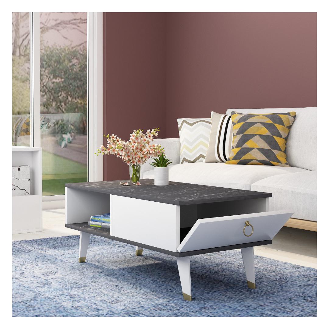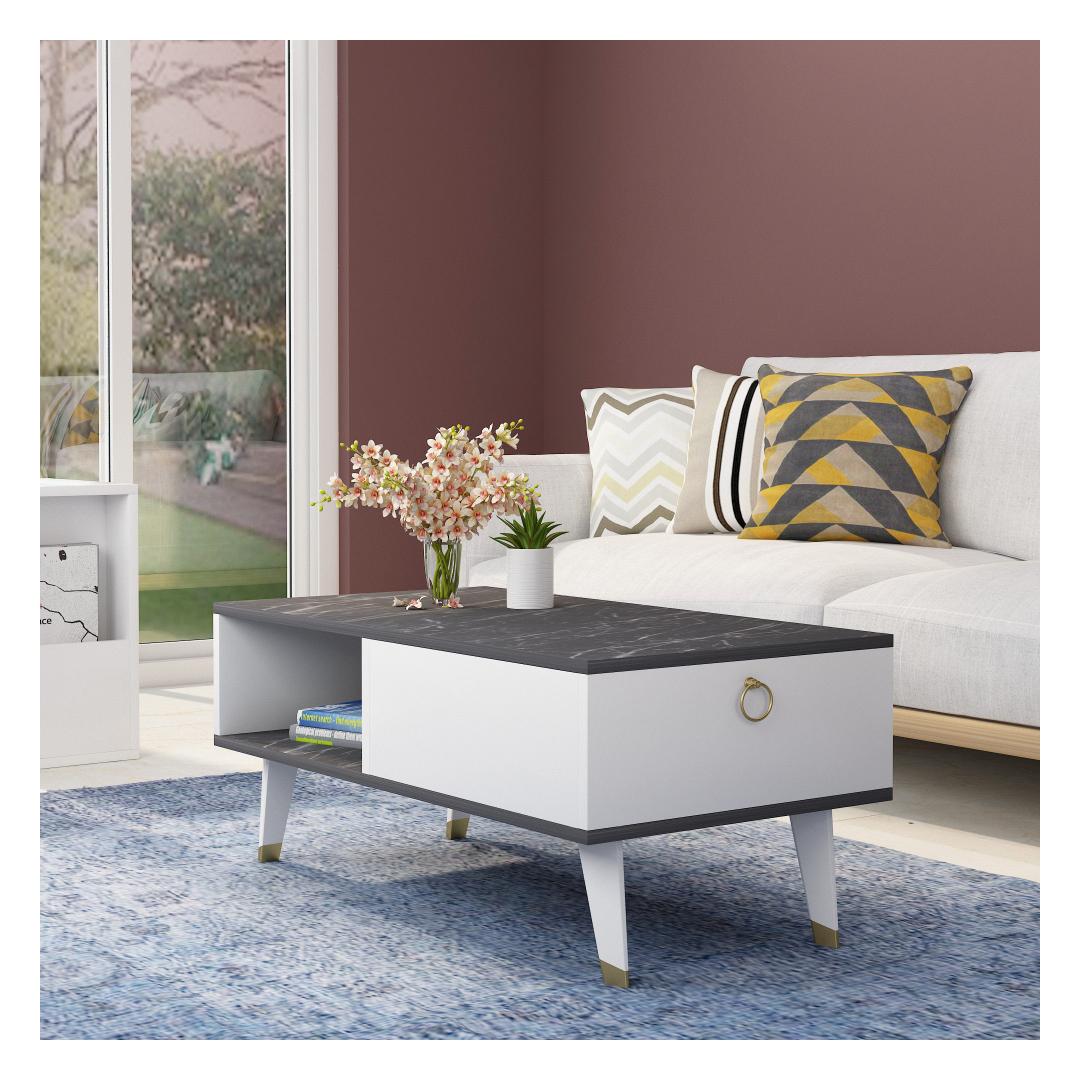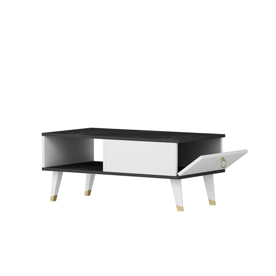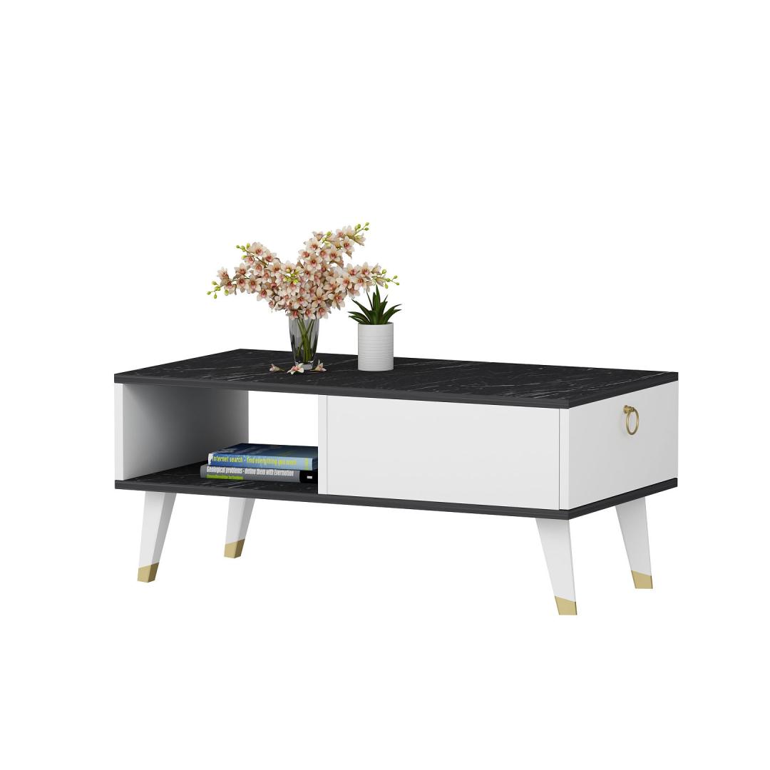 Selle kohvilaua kontrastsed mustad ja valged värvid loovad visuaalselt lummava efekti, mis täiendab vaevata mis tahes sisekujundust. Olenemata sellest, kas teil on minimalistlik, kaasaegne või eklektiline stiil, muutub see kohvilaud kindlasti teie elutoa keskpunktiks.