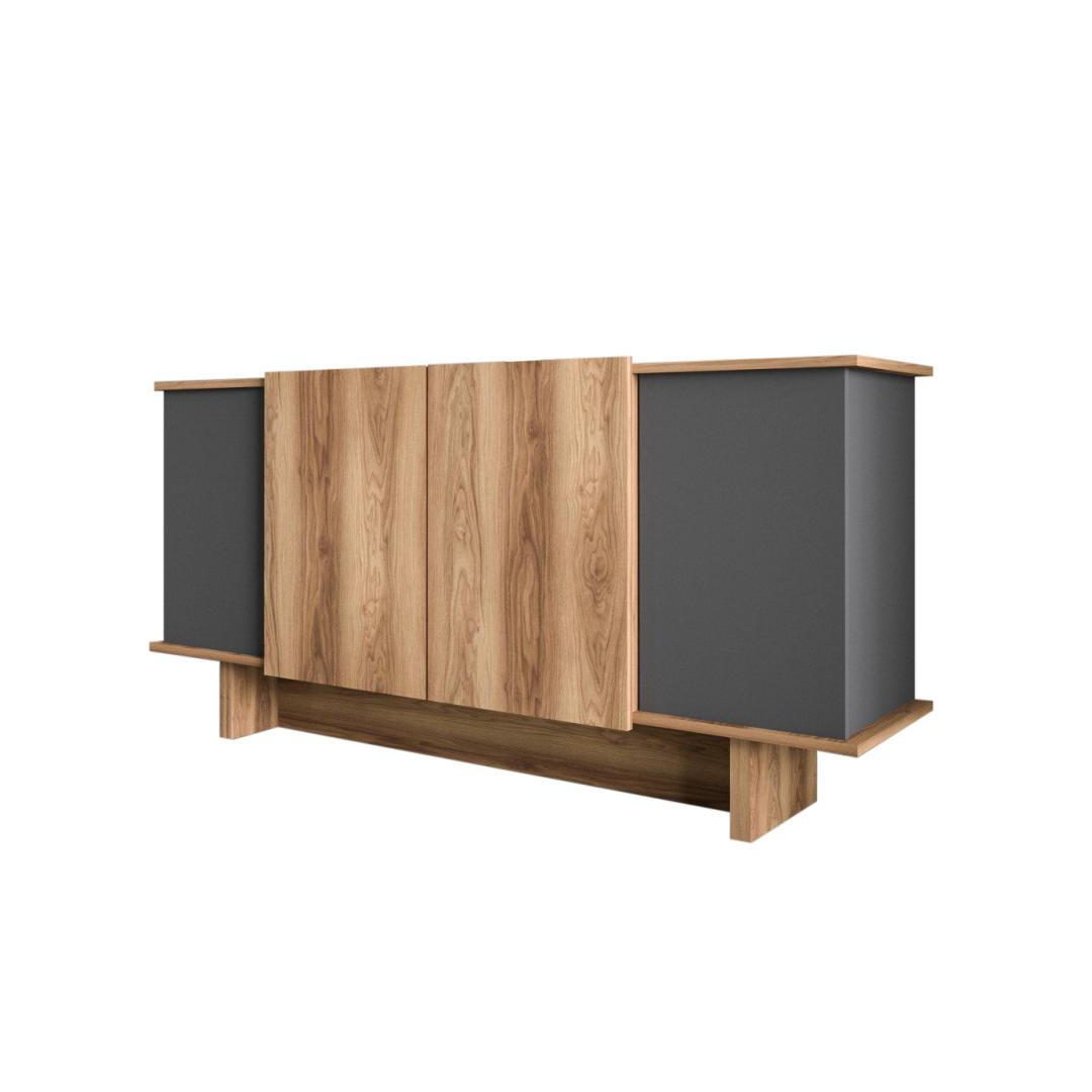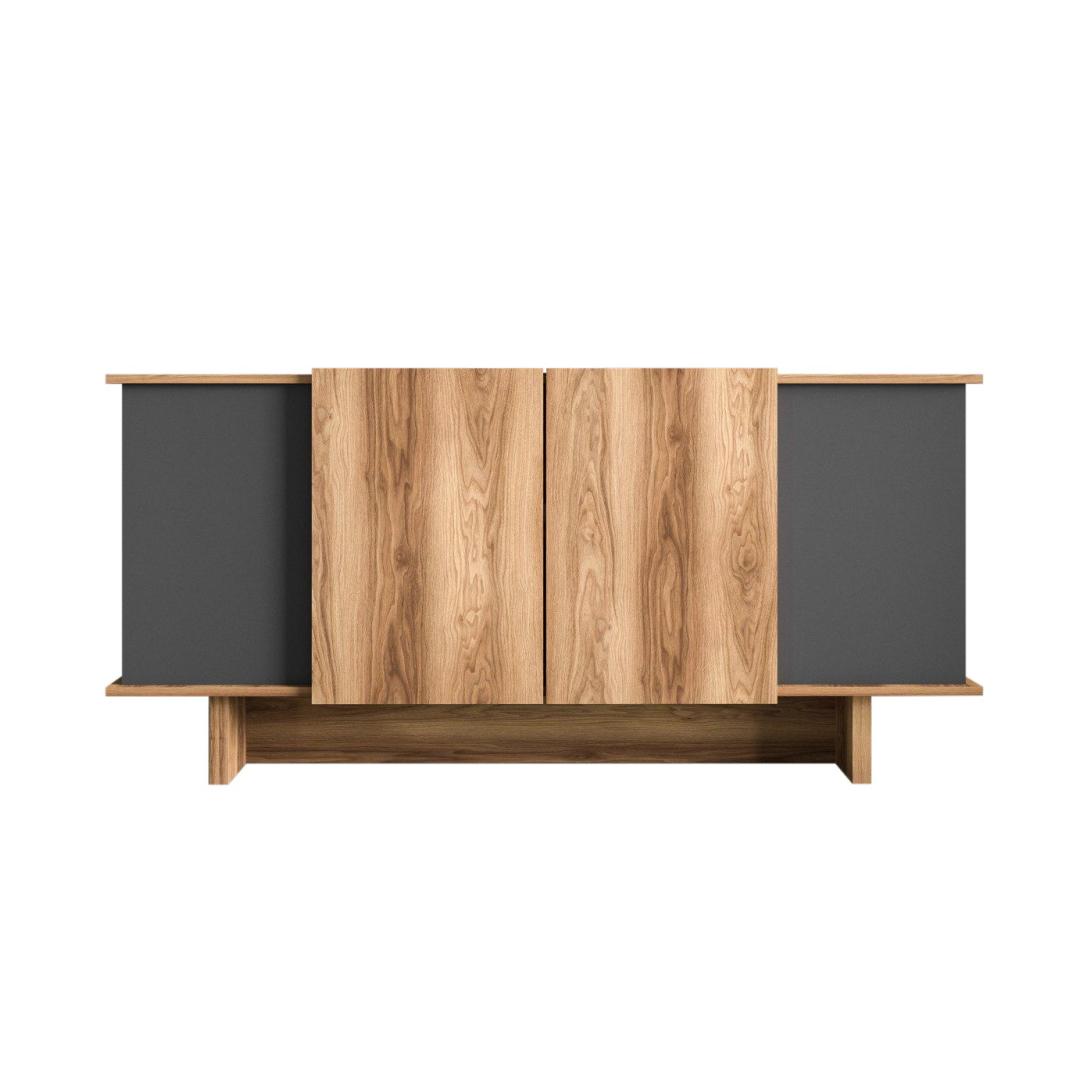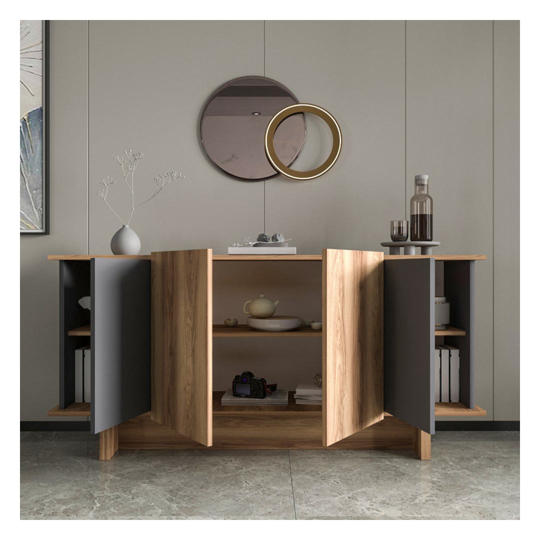 Muuda oma eluruum meie uimastava konsooliga, mis on valmistatud 100% melamiiniga kaetud puitlaastplaadist. Stiilne disain ning antratsiidi ja pähklipuu kaasaegne värvikombinatsioon tõstavad koheselt iga ruumi stiili.