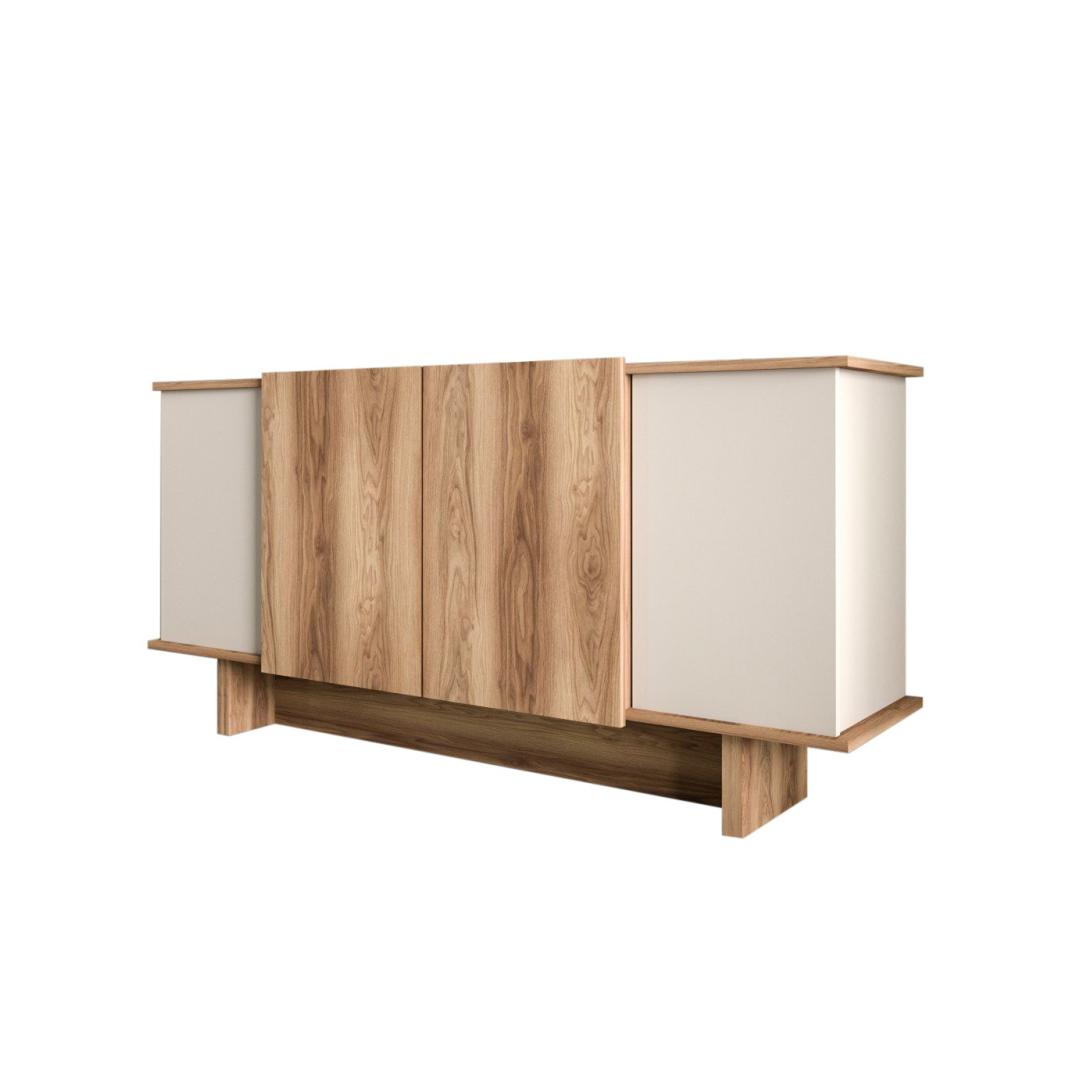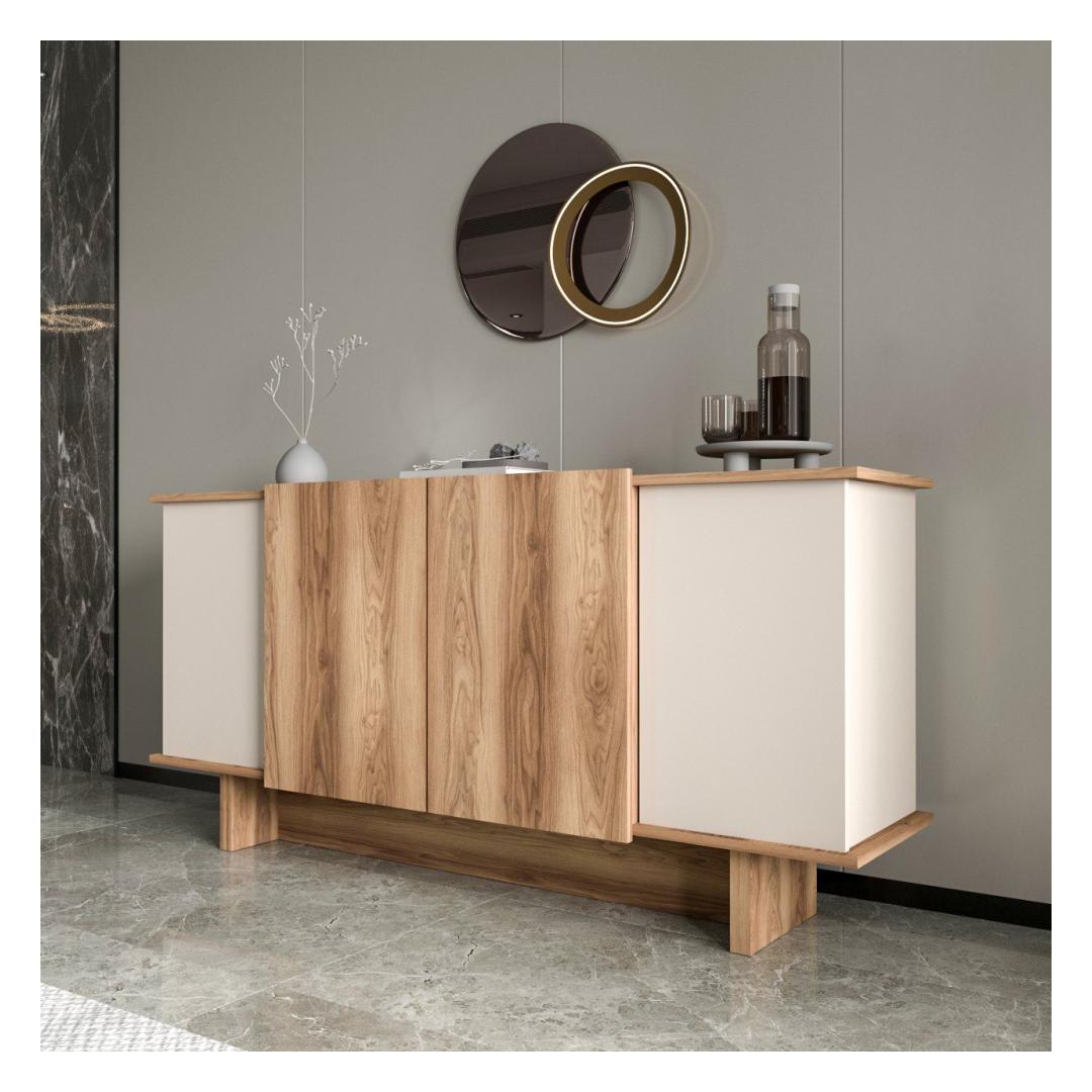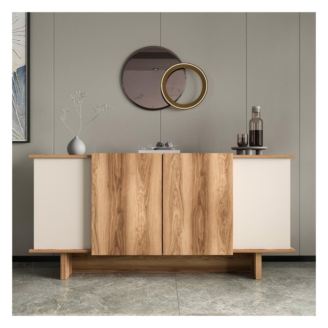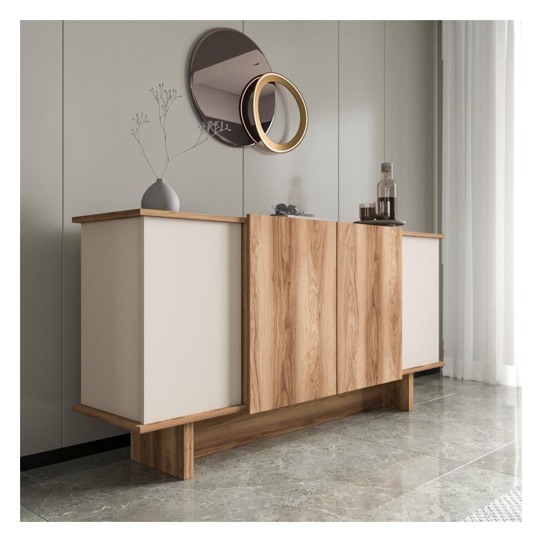 Tänu oma elegantsele disainile ja moodsale liiva- ja pähklipuu värvikombinatsioonile tõstab see konsool koheselt mis tahes ruumi välimust. Olenemata sellest, kas paigutate selle elutuppa, koridori või magamistuppa, lisab see teie ruumile luksuslikkust.