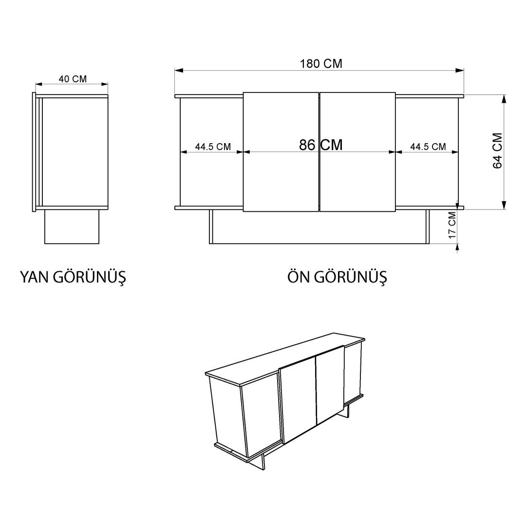 • Mõõdud: Laius 180 cm, kõrgus 81 cm, sügavus 40 cm.