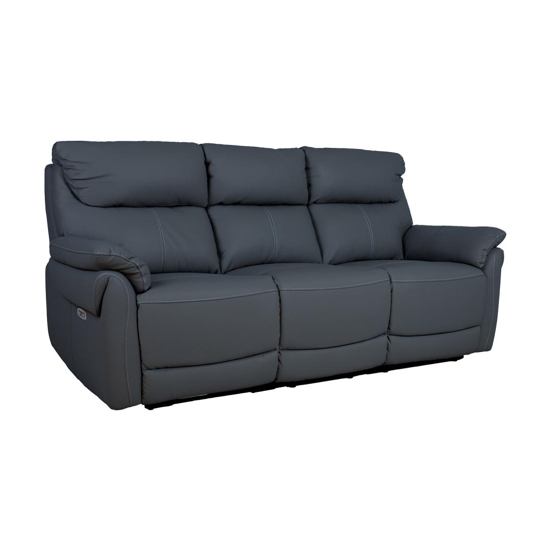 Diivan BOWEN 3-kohaline elektriline recliner, tumehall naturaalne nahk.