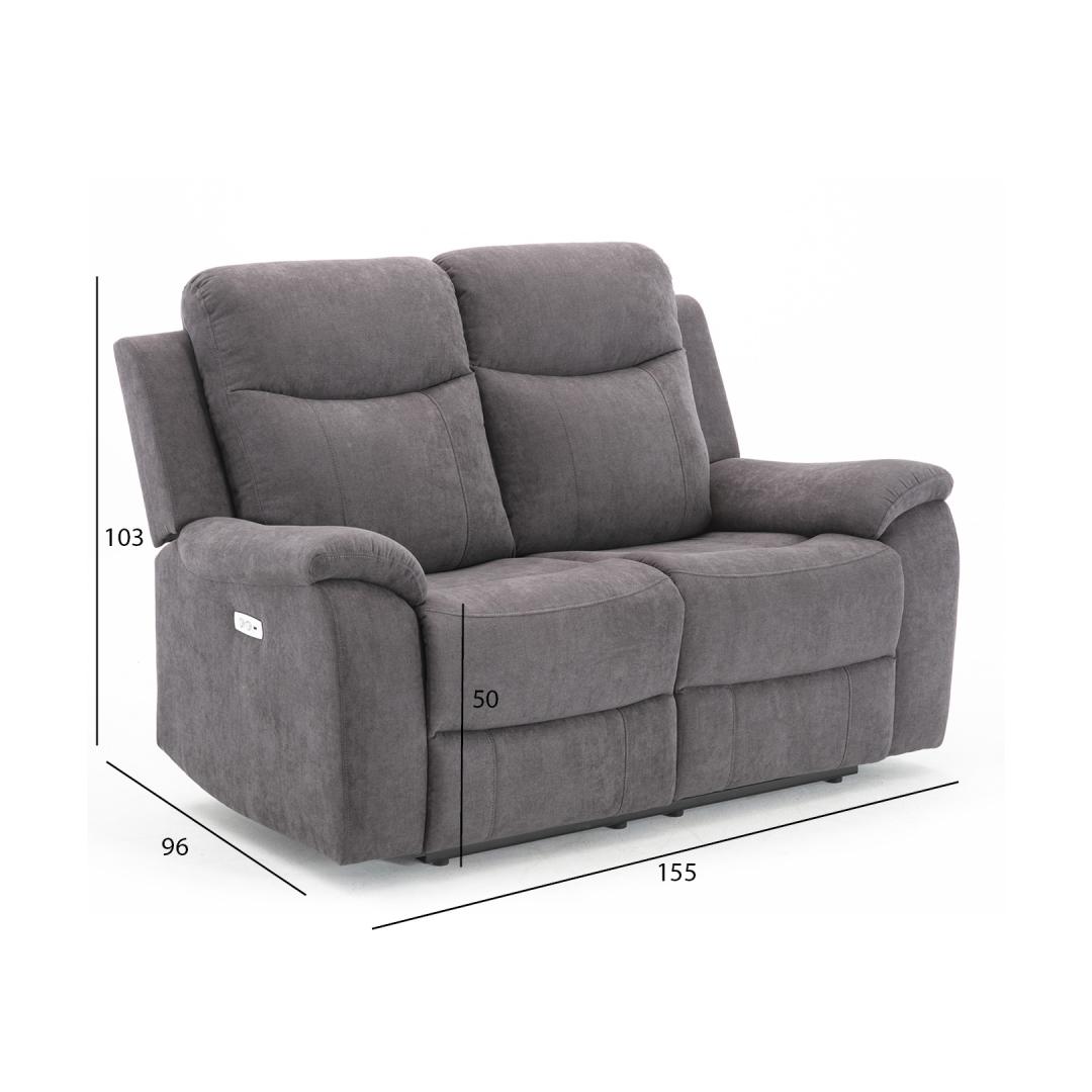 Diivan MILO 2-kohaline elektriline recliner 155x96xH103cm, hall. Recliner tüüpi diivani mõlema istme selja- ja jalatoe asendit on võimalik muuta elektrilise mehhanismi abil. Jalatuge üles tõstes liigub seljatugi sujuvalt kaasa lamavasse asendisse. Kattematerjal: 100% polüesterkangas, Martindale 15 000. Karkass: puit, vineer ja metall. Tugitoolil on siksak ja pocket vedrustus. Polsterdus: polüuretaanvaht. Diivan MILO 2-kohaline elektriline recliner 155x96xH103cm, hall. Recliner tüüpi diivani mõlema istme selja- ja jalatoe asendit on võimalik muuta elektrilise mehhanismi abil. Jalatuge üles tõstes liigub seljatugi sujuvalt kaasa lamavasse asendisse. Kattematerjal: 100% polüesterkangas, Martindale 15 000. Karkass: puit, vineer ja metall. Tugitoolil on siksak ja pocket vedrustus. Polsterdus: polüuretaanvaht.