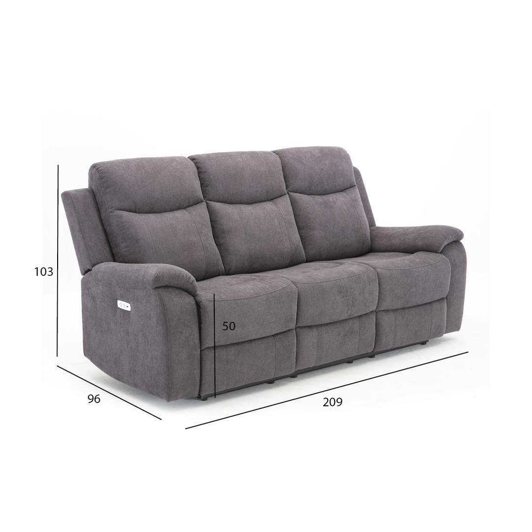 Diivan MILO 3-kohaline elektriline recliner 209x96xH103cm, hall. Recliner tüüpi diivani äärmiste istmete selja- ja jalatoe asendit on võimalik muuta elektrilise mehhanismi abil. Jalatuge üles tõstes liigub seljatugi sujuvalt kaasa lamavasse asendisse. Keskmine iste ei ole reguleeritav. Kattematerjal: 100% polüesterkangas, Martindale 15 000. Karkass: puit, vineer ja metall. Tugitoolil on siksak ja pocket vedrustus. Polsterdus: polüuretaanvaht. Diivan MILO 3-kohaline elektriline recliner 209x96xH103cm, hall. Recliner tüüpi diivani äärmiste istmete selja- ja jalatoe asendit on võimalik muuta elektrilise mehhanismi abil. Jalatuge üles tõstes liigub seljatugi sujuvalt kaasa lamavasse asendisse. Keskmine iste ei ole reguleeritav. Kattematerjal: 100% polüesterkangas, Martindale 15 000. Karkass: puit, vineer ja metall. Tugitoolil on siksak ja pocket vedrustus. Polsterdus: polüuretaanvaht.