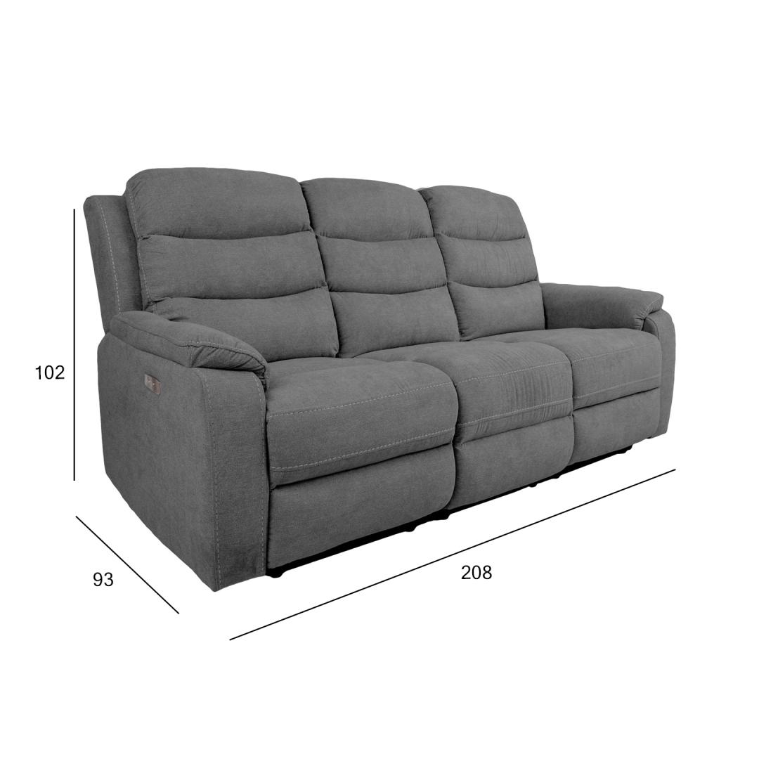 Diivan MIMI 3-kohaline elektriline recliner 208x93xH102cm, hall