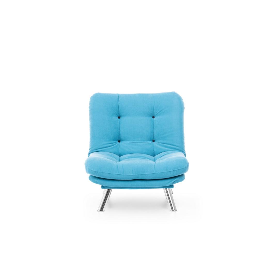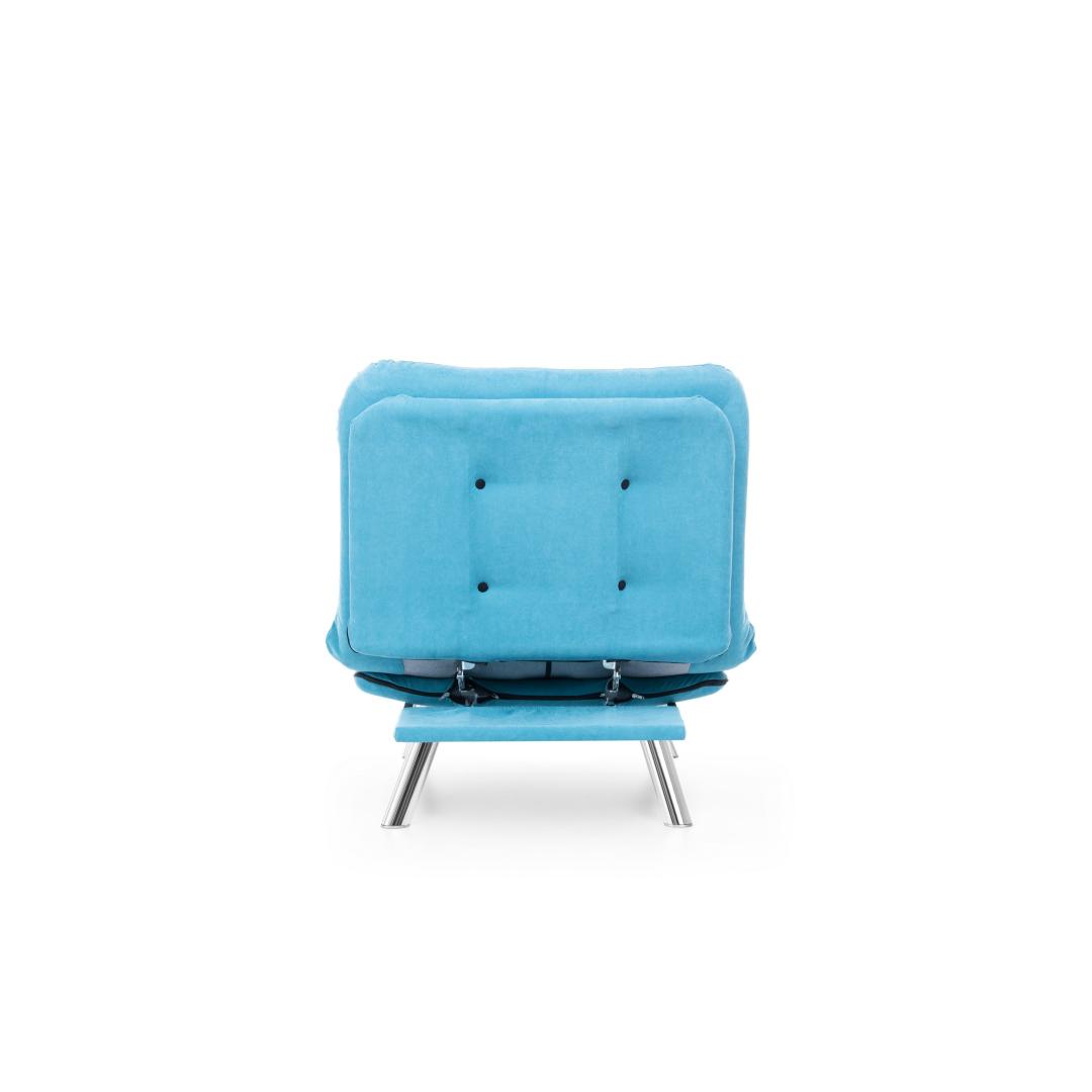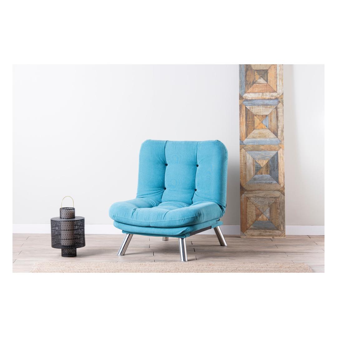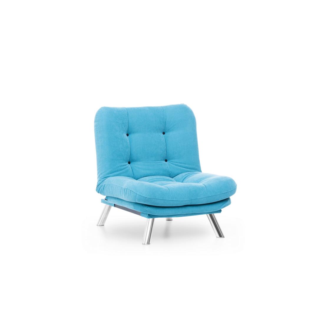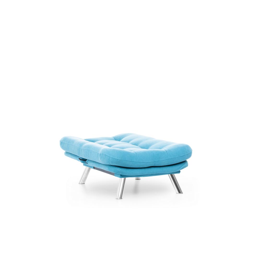 Muuda oma eluruum meie hämmastava 1-kohalise diivani abil, mis on lummavas türkiissinises värvitoonis. See mööbliese ei ole lihtsalt diivan, vaid stiili ja mugavuse väljendus, mis tõstab iga ruumi atmosfääri.Ületamatu Mugavus ja KvaliteetValmistatud 100% metallraamist ja pehmest kangast, on see diivan loodud maksimaalse mugavuse ja vastupidavuse tagamiseks. 400 gr/m² silikoonkiud täidis tagab luksusliku istumiskogemuse, samas kui 25 DNS vaht+kiud kattekiht toetab teie selga ja istet.Šikk ja Mitmekülgne DisainSelle diivani sujuv disain kindlas türkiissinises värvitoonis lisab teie ruumile elegantsi. Kompaktne suurus teeb selle ideaalseks väikestesse elutubadesse, magamistubadesse või isegi kodukontoritesse.Kergesti HooldatavÜtle hüvasti koristamise vaevadele meie kergesti puhastatava kangaga. Lihtsalt pühkige ära tilgad ja plekid, et diivan näeks iga päev välja nagu uus.Tõsta oma kodu sisustus meie 1-kohalise diivani abil ja koge stiili, mugavuse ja kvaliteedi täiuslikku segu. Tellige nüüd ja muuda oma ruum lõõgastumise ja rafineerituse pelgupaigaks.Tehnilised Andmed:Raam: 100% METALLKangas: 100% PEHME KANGASLaius: 88 cm, Kõrgus: 90 cm, Sügavus: 105 cmIste Sügavus: 60 cm, Iste Laius: 80 cm, Iste Kõrgus: 42 cmVoodi Suurus: Laius: 135 cm, Sügavus: 88 cm400 gr/m² silikoonkiud täidis25 DNS vaht+kiud kattekiht istumiseks25 DNS vaht+kiud kattekiht seljatoeksJala Kõrgus: 21 cmMaksimaalne Kandevõime: 100 kgMetall / Kroomitud Jalgade KattekihtVärv: Türkiissinine Värv: Turquoise