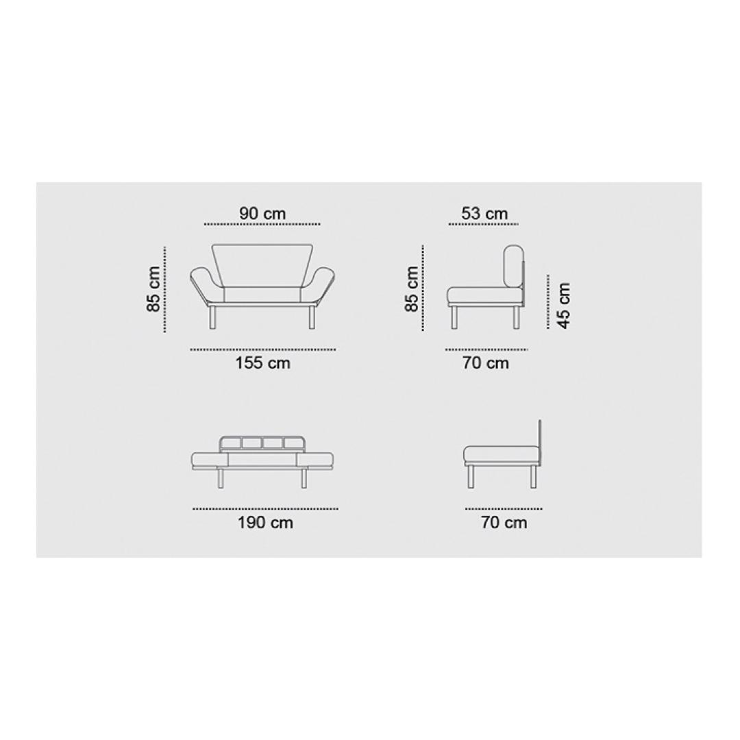 • Laius: 155 cm, Kõrgus: 85 cm, Sügavus: 70 cm