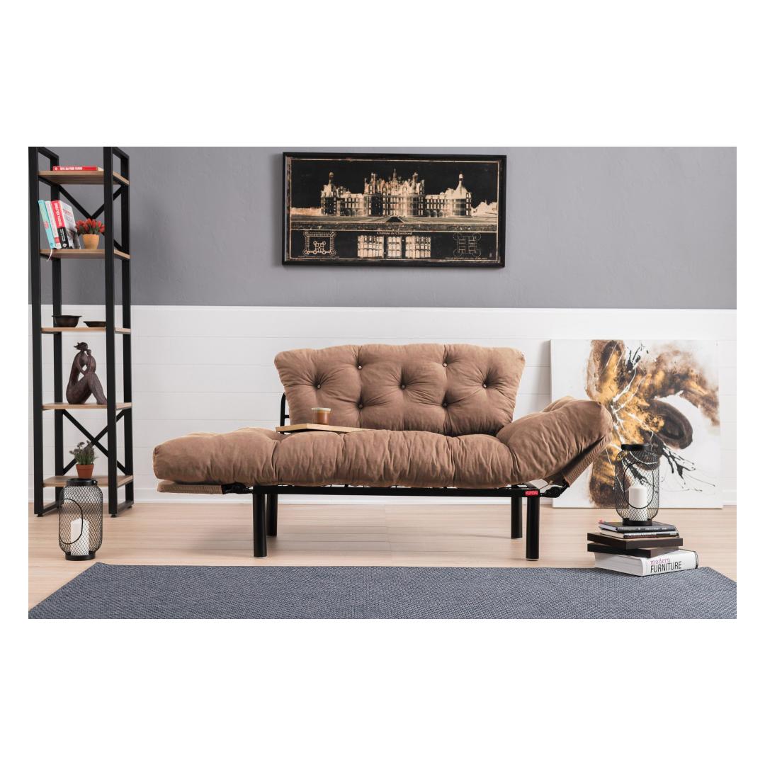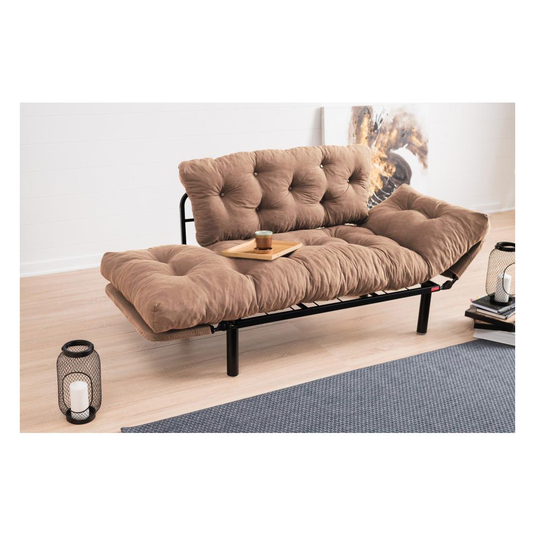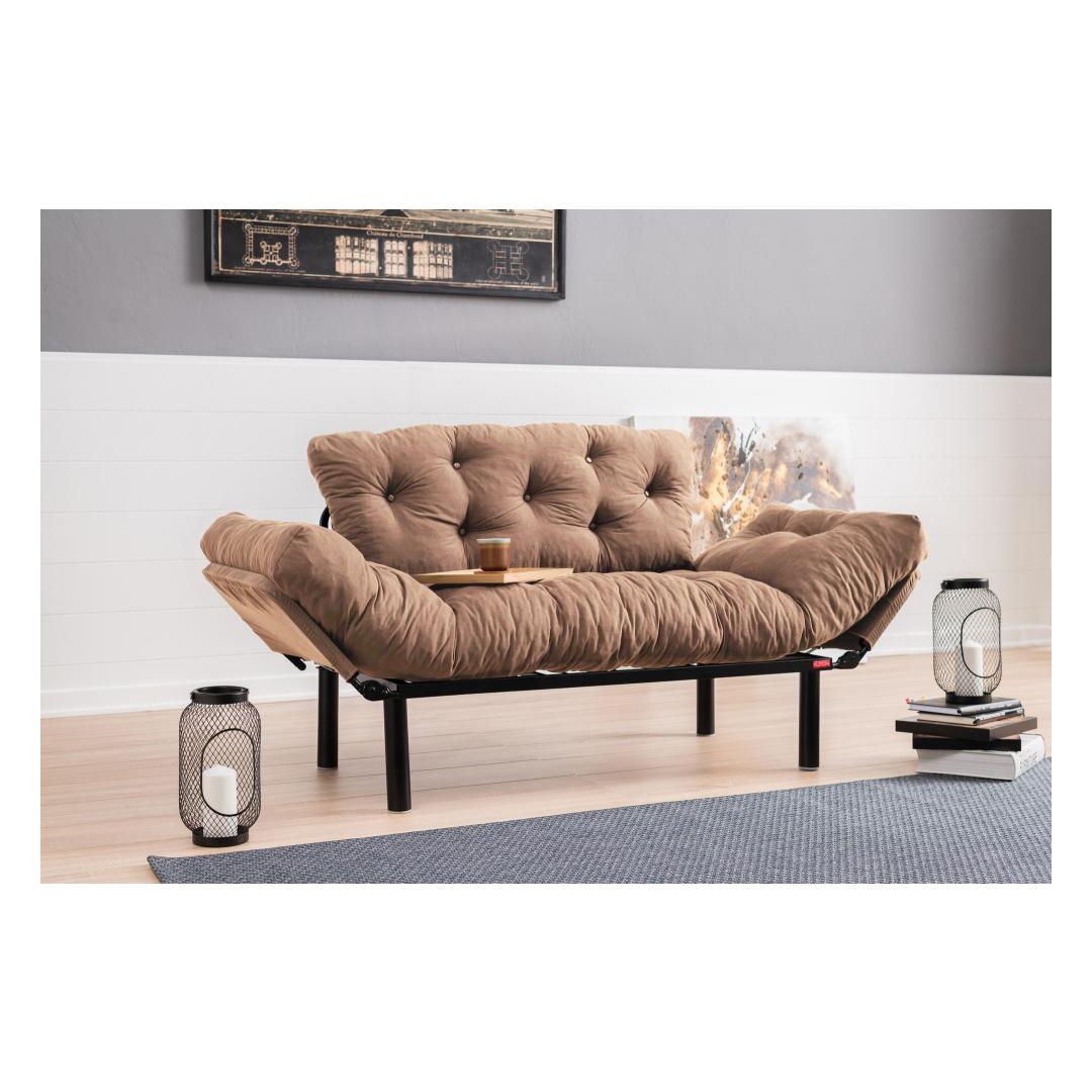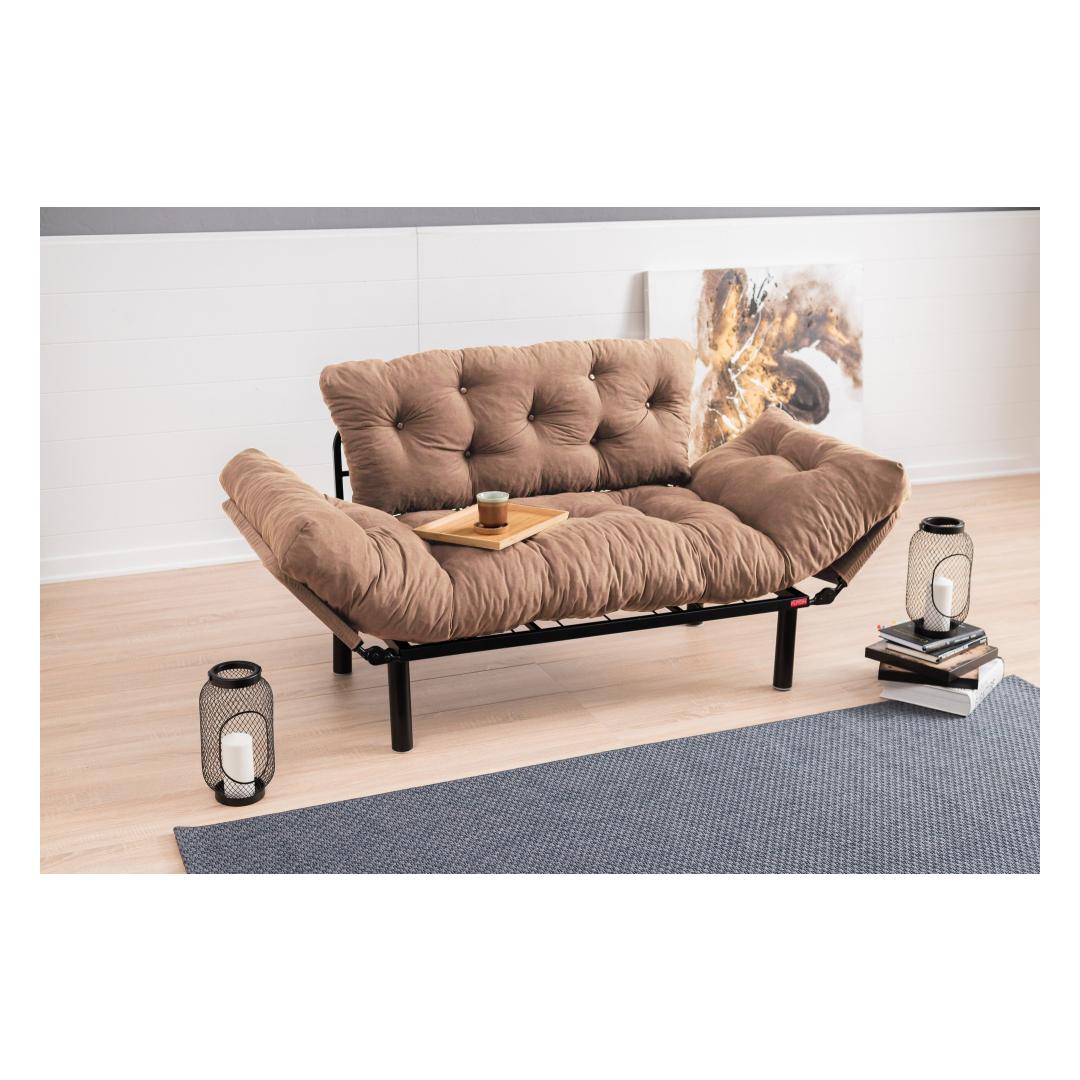 155 cm laiuse, 85 cm kõrguse ja 70 cm sügavusega diivanvoodi on ideaalne lahendus väiksematesse eluruumidesse. Kompaktne disain võimaldab seda hõlpsasti muuta 187 cm laiuseks ja 70 cm sügavuseks voodiks, pakkudes külalistele mugavat magamispinda.