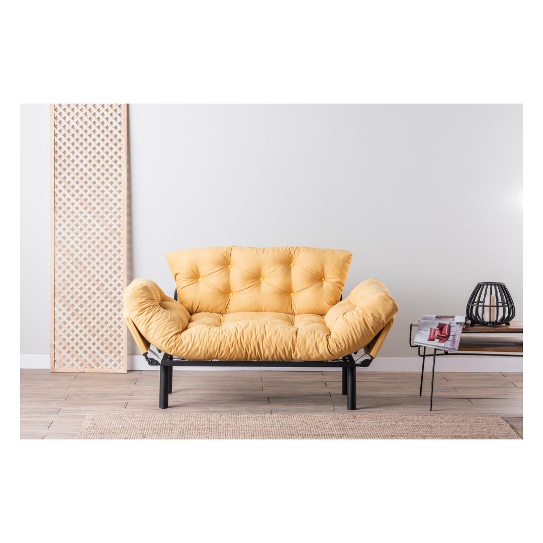 Esitleme meie kaunist 2-kohalist diivanvoodit erksas sinepikollases värvitoonis! See mööbliese ei ole mitte ainult diivan, vaid ka mugav voodi ootamatute külaliste või laiskade filmõhtute jaoks.