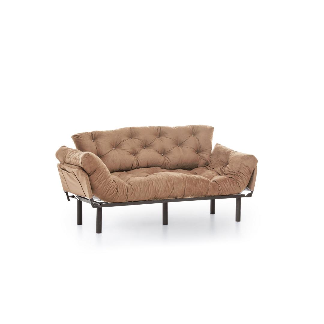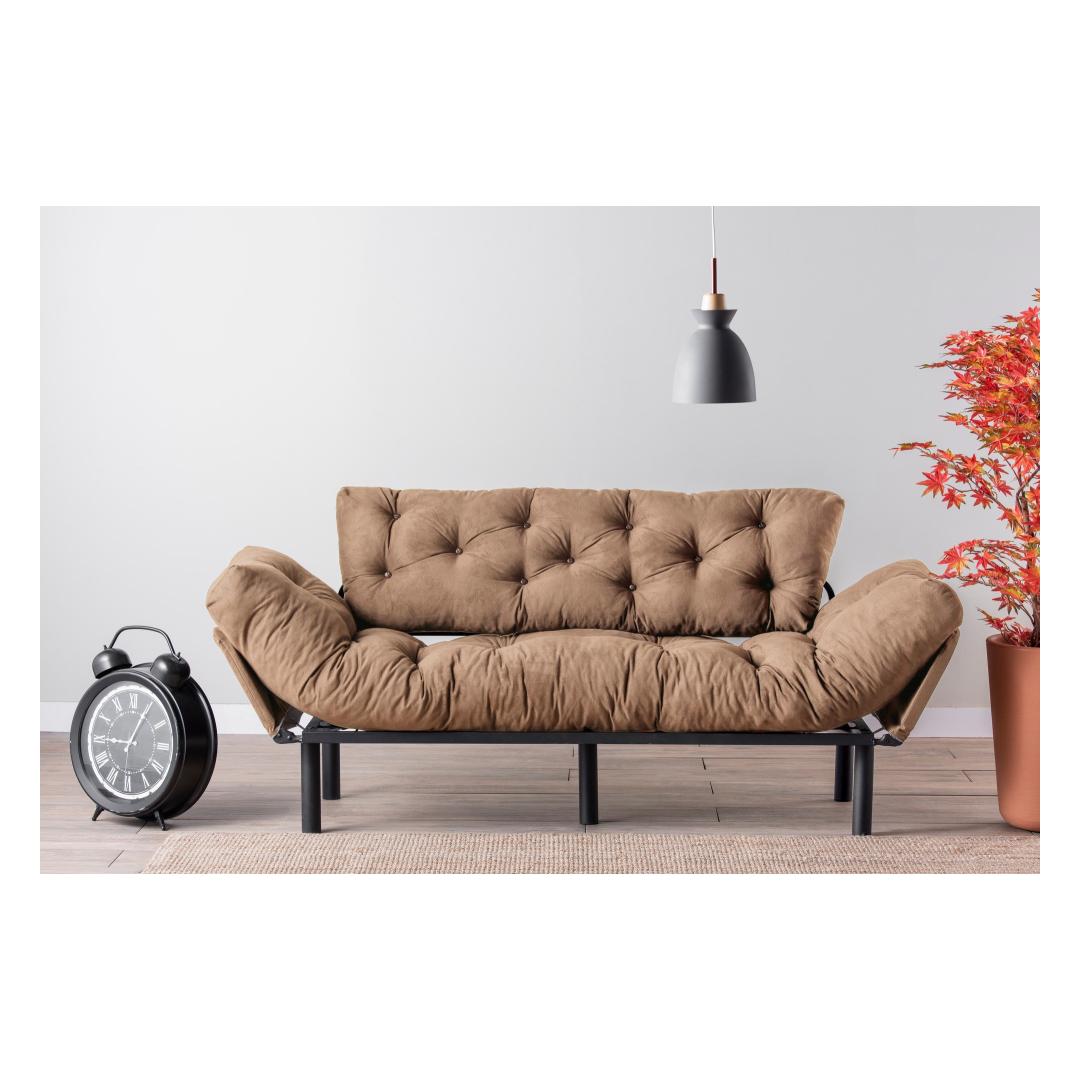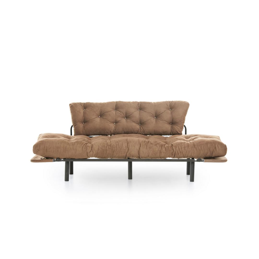 Vajutage pehmete 24 dns vahtpolstrite sisse, mis pakuvad võrratut mugavust nii istumiseks kui ka magamiseks. Tugev metallraam tagab vastupidavuse ja stabiilsuse, samas kui polüesterkangas lisab teie ruumile elegantsi.