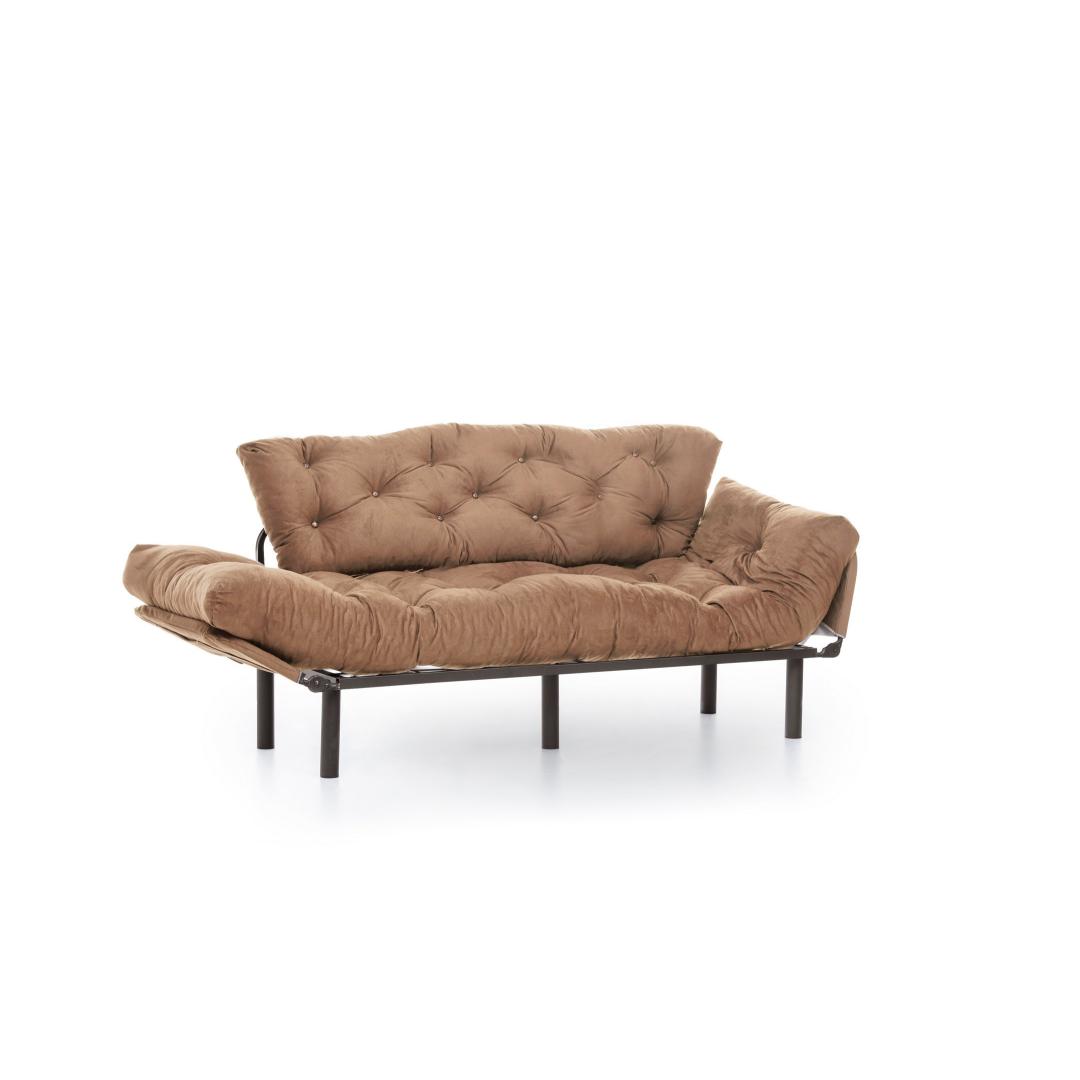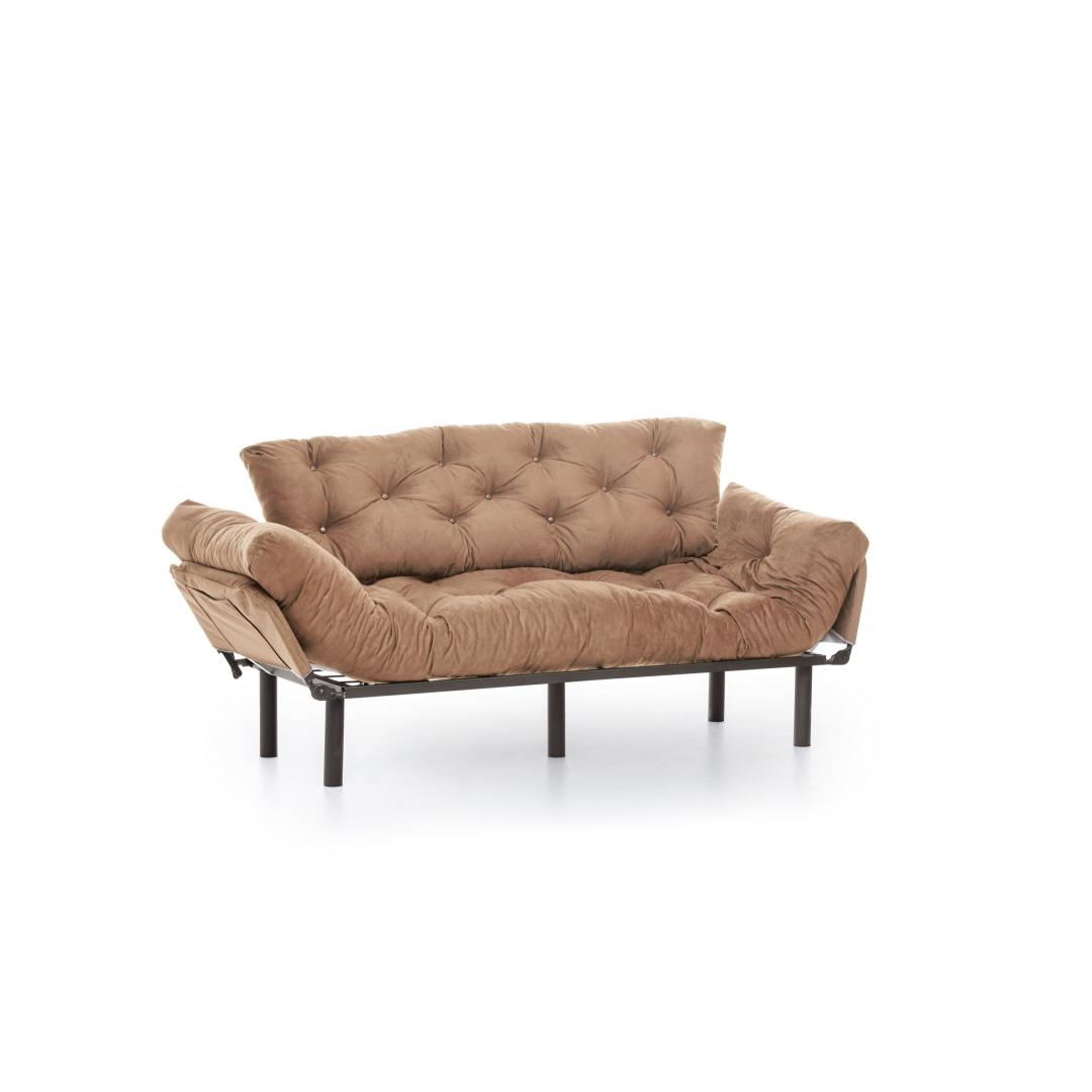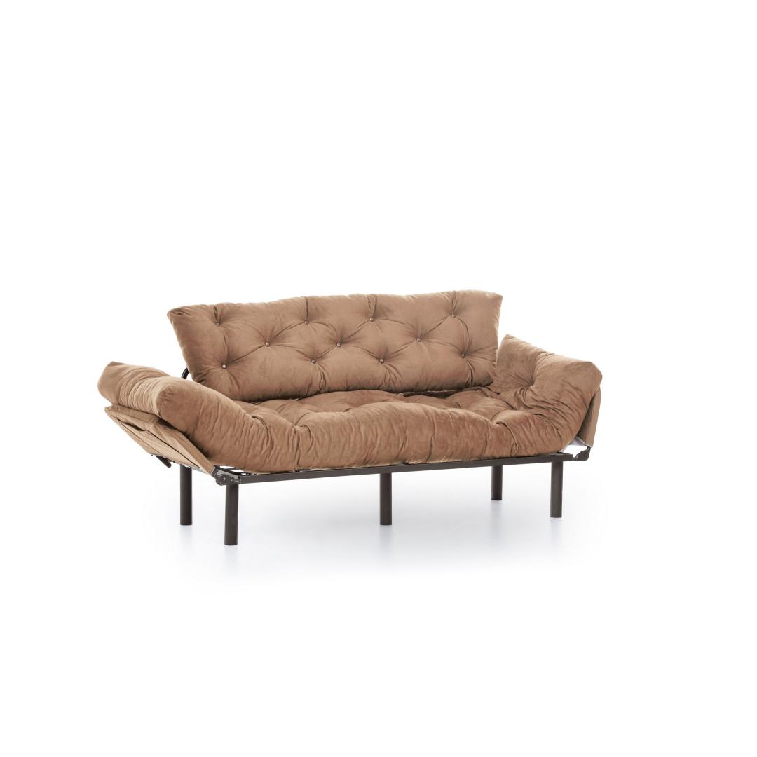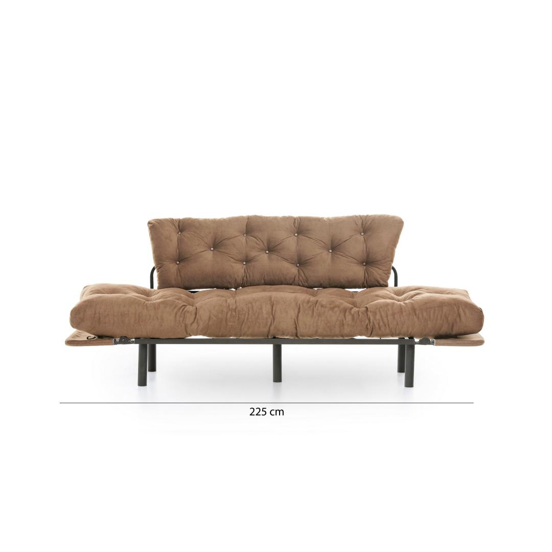 Vajutage pehmete 24 dns vahtpolstrite sisse, mis pakuvad võrratut mugavust nii istumiseks kui ka magamiseks. Tugev metallraam tagab vastupidavuse ja stabiilsuse, samas kui polüesterkangas lisab teie ruumile elegantsi.