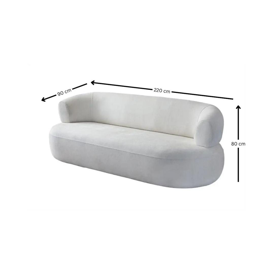 Muuda oma eluruum luksusliku 3-kohalise diivani abil, mis on loodud tooma mugavust ja stiili sinu koju. Tugevast raamistikust, mis koosneb 70% sarapuu ja 30% melamiinkattega puitlaastplaadist, on see diivan loodud kestma aastaid. Kanga koostis on 100% polüester, millel on kaunis boucle tekstuur, lisades igasse ruumi elegantsi.Mugavus ja stiil koos30 DNS vaht ja 20 cm vahtkõrgus pakuvad ideaalset tasakaalu toe ja pehmuse vahel, tagades, et saad lõõgastuda maksimaalses mugavuses. Kaasaskantav seljatoe padja võimaldab sul kohandada oma istumiskogemust, samas kui komplekti kuuluvad 2 patja lisavad veelgi mugavust.Kergesti hooldatav ja liigutatavPlastjalad muudavad selle diivani alt lihtsaks puhastamiseks, samas kui kerge disain võimaldab vaevata liigutada ja ümber paigutada. Käetoe kõrgus 66 cm pakub lisatuge, muutes selle diivani ideaalseks lõõgastumiseks või külaliste meelelahutamiseks.Tehnilised andmed:Raam: 70% sarapuu / 30% melamiinkattega puitlaastplaatKangas: 100% polüester (boucle tekstuur)PlastjaladKergesti puhastatavKaasaskantav seljatoe padi30 DNS vahtVahtkõrgus: 20 cmLaius: 230 cm, Kõrgus: 70 cm, Sügavus: 70 cmKäetoe kõrgus: 66 cmJala kõrgus: 1.5 cmKandekapasiteet: 240 kgVärv: Valge Värv: White
