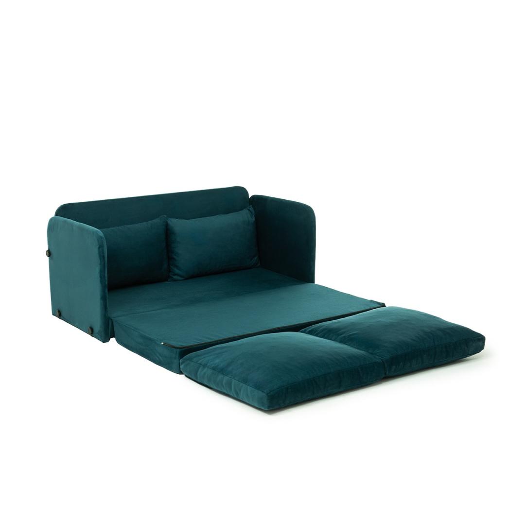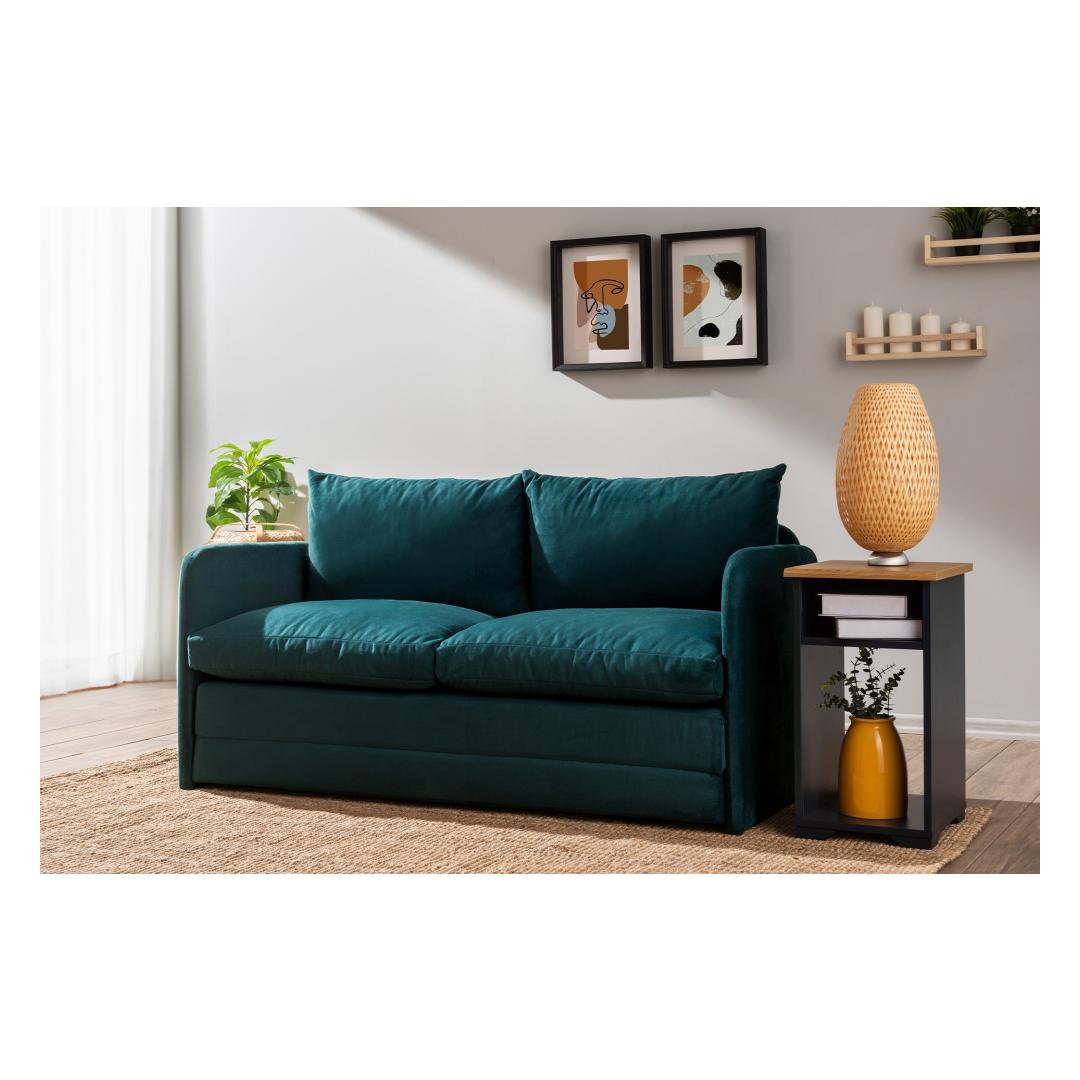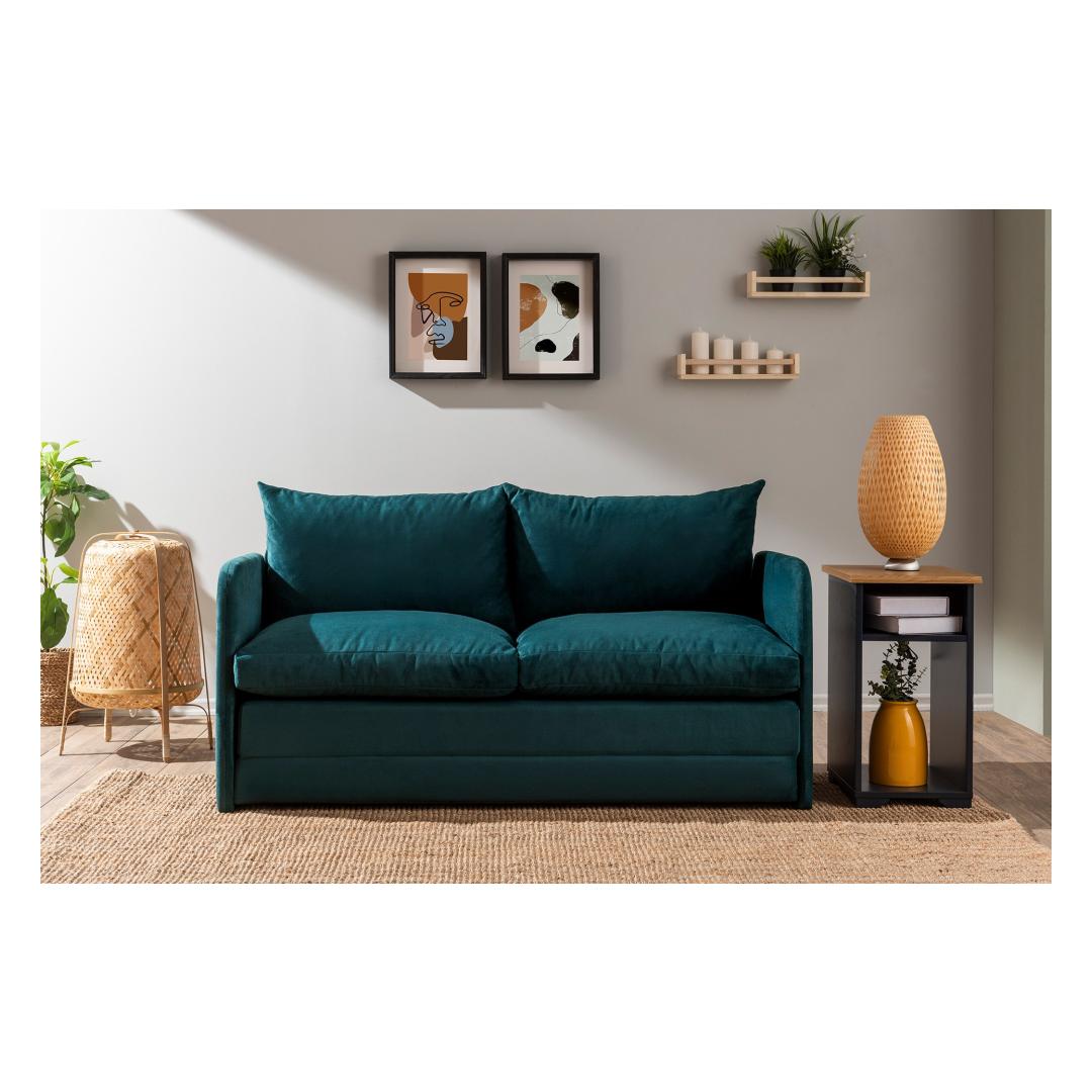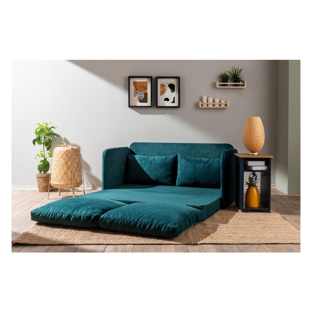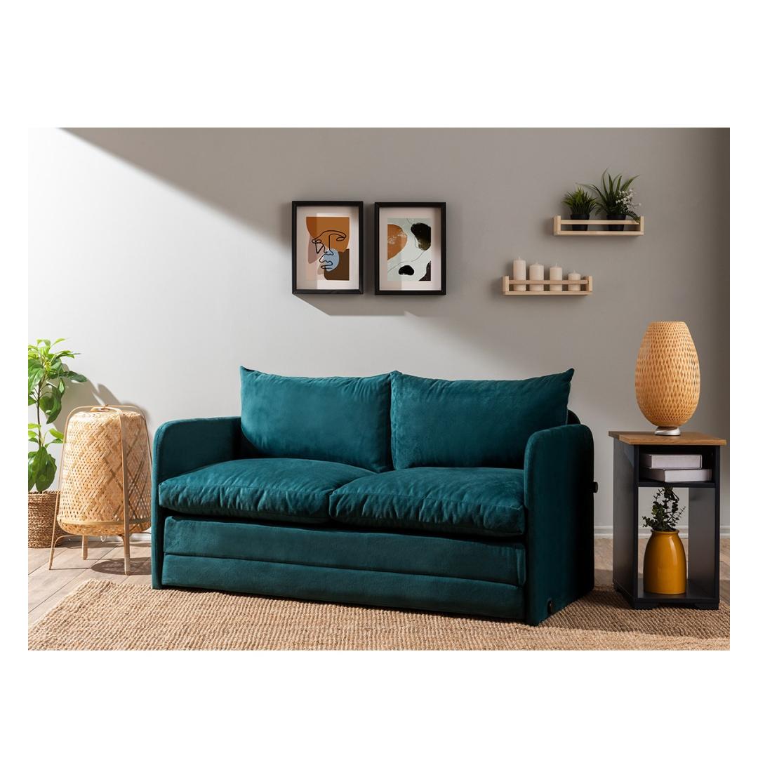 Muuda oma elutuba meie 2-kohalise diivanvoodiga, mis on uimastava petroolirohelise värvusega. See moodne tükk ei ole mitte ainult diivan, vaid ka mugav magamiskoht ootamatute külaliste või laiskade filmiõhtute jaoks.