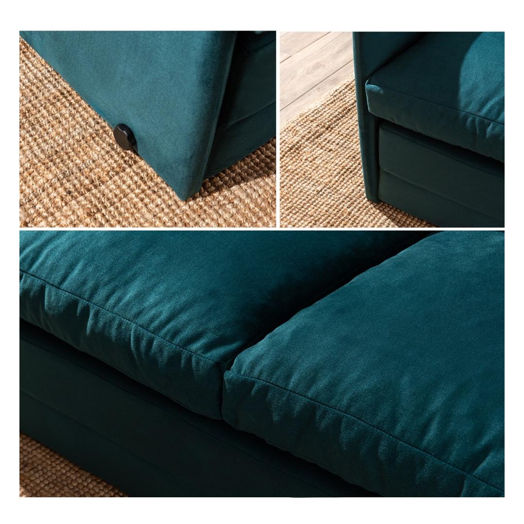 Vaju pluusse istumisalusele, mille istumissügavus on 49 cm ja istumislaius 140 cm, pakkudes piisavalt ruumi sinu ja sinu lähedaste lõõgastumiseks. Elegantne disain lisab elegantsi igasse tuppa, samas kui petrooliroheline värvus annab isikupära.
