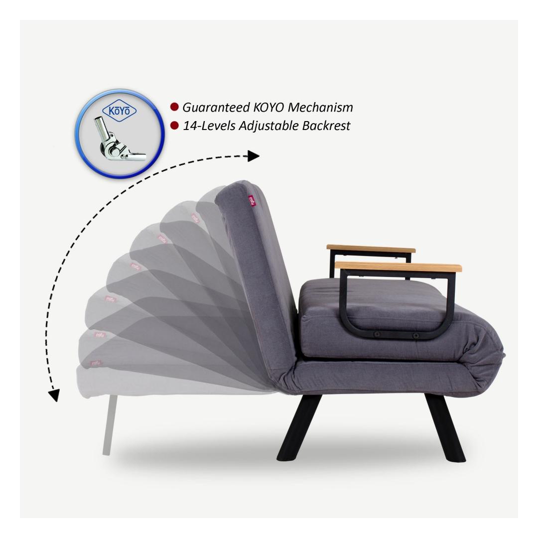 Langeta end pehme istme padjale, mis on valmistatud ümbertöödeldud vahtmaterjalist, et saavutada maksimaalne mugavus, samas kui 14-tasandiline reguleeritav seljatugi võimaldab sul leida täiusliku asendi lõõgastumiseks. Ühtlane hall värv ja modernne disain teevad sellest diivanvoodist stiilse lisandi igasse ruumi, olgu see siis trendikas loft või hubane kodu.