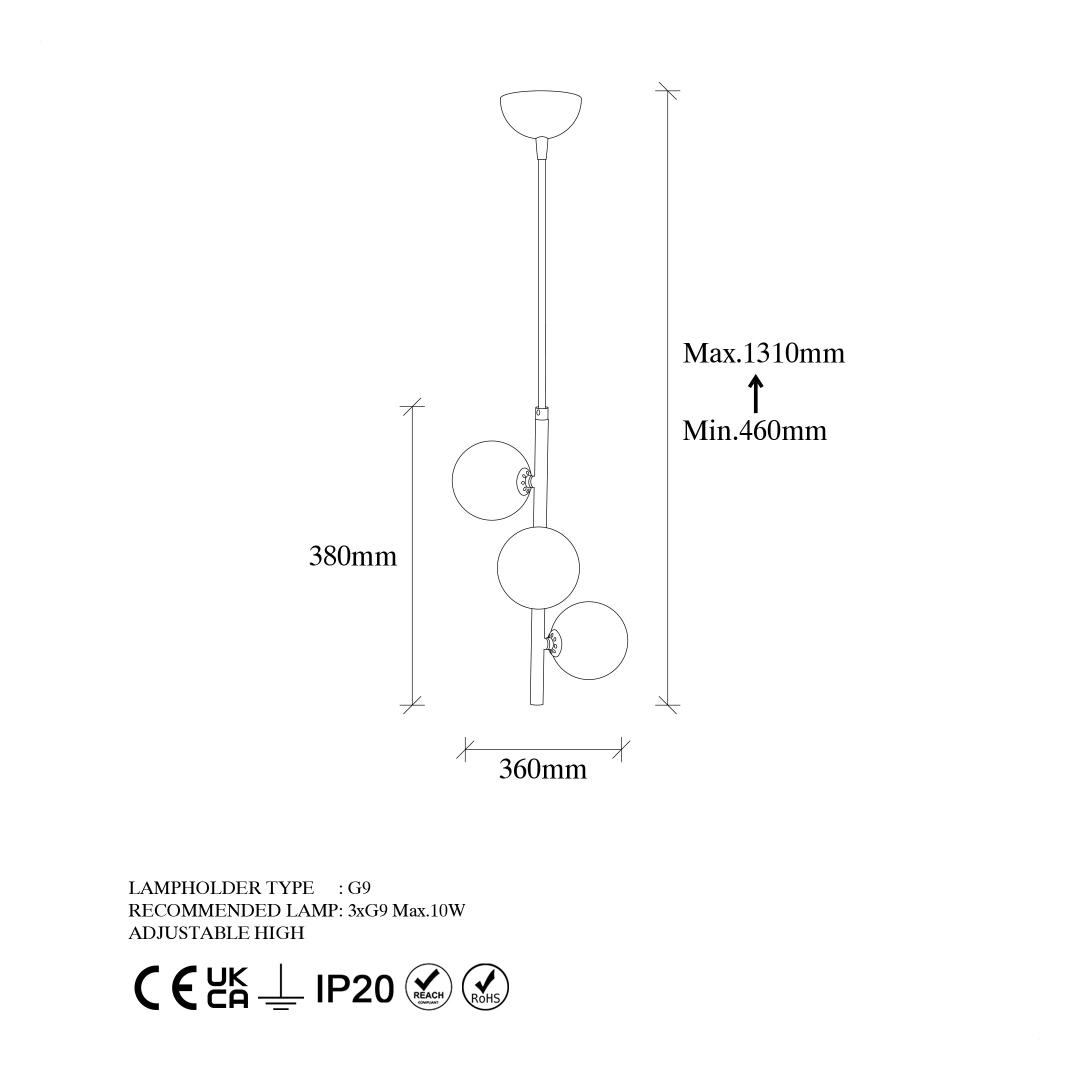 Maksimaalse kõrgusega 131 cm ja reguleeritava kaabli pikkusega 90 cm saate lühtri kõrgust kohandada vastavalt oma ruumile. Olgu teil kõrged laed või hubane nurk, see lühter sobib teie koju ideaalselt.