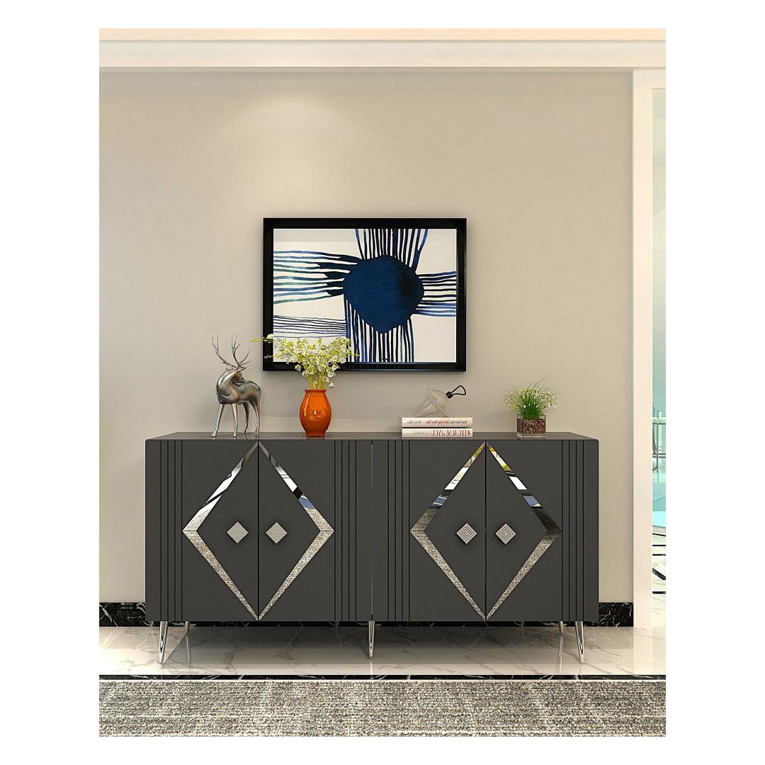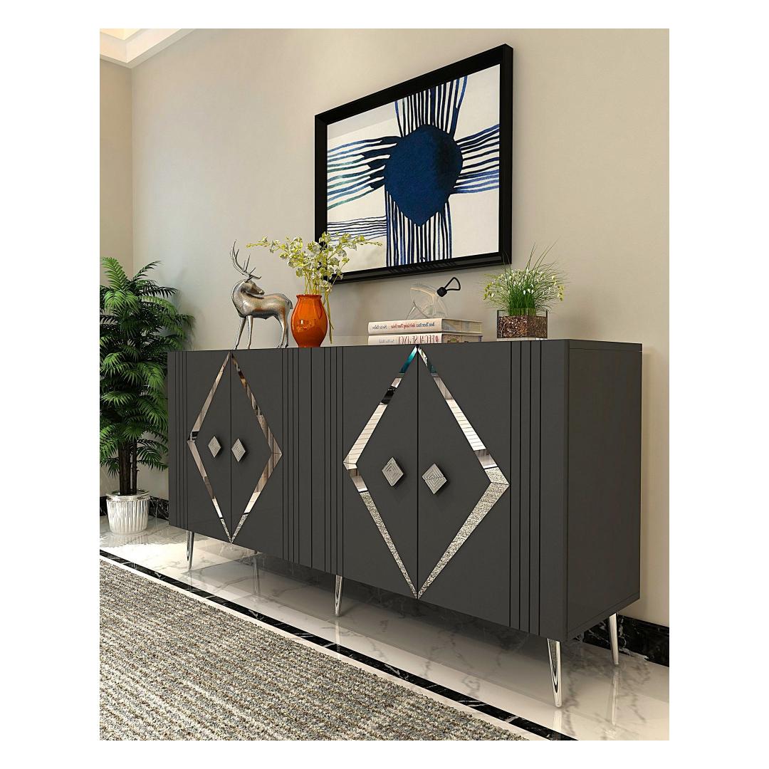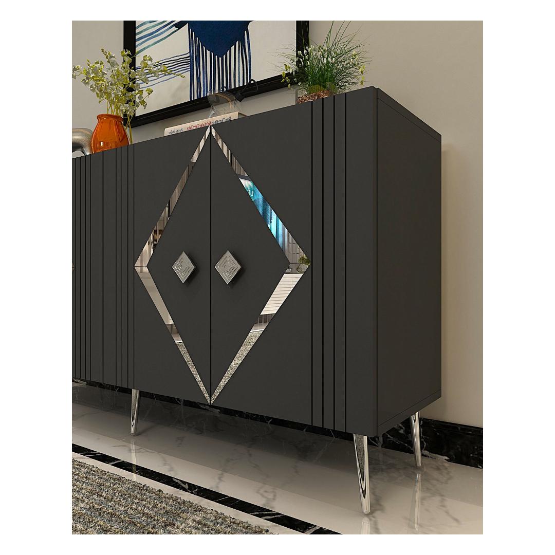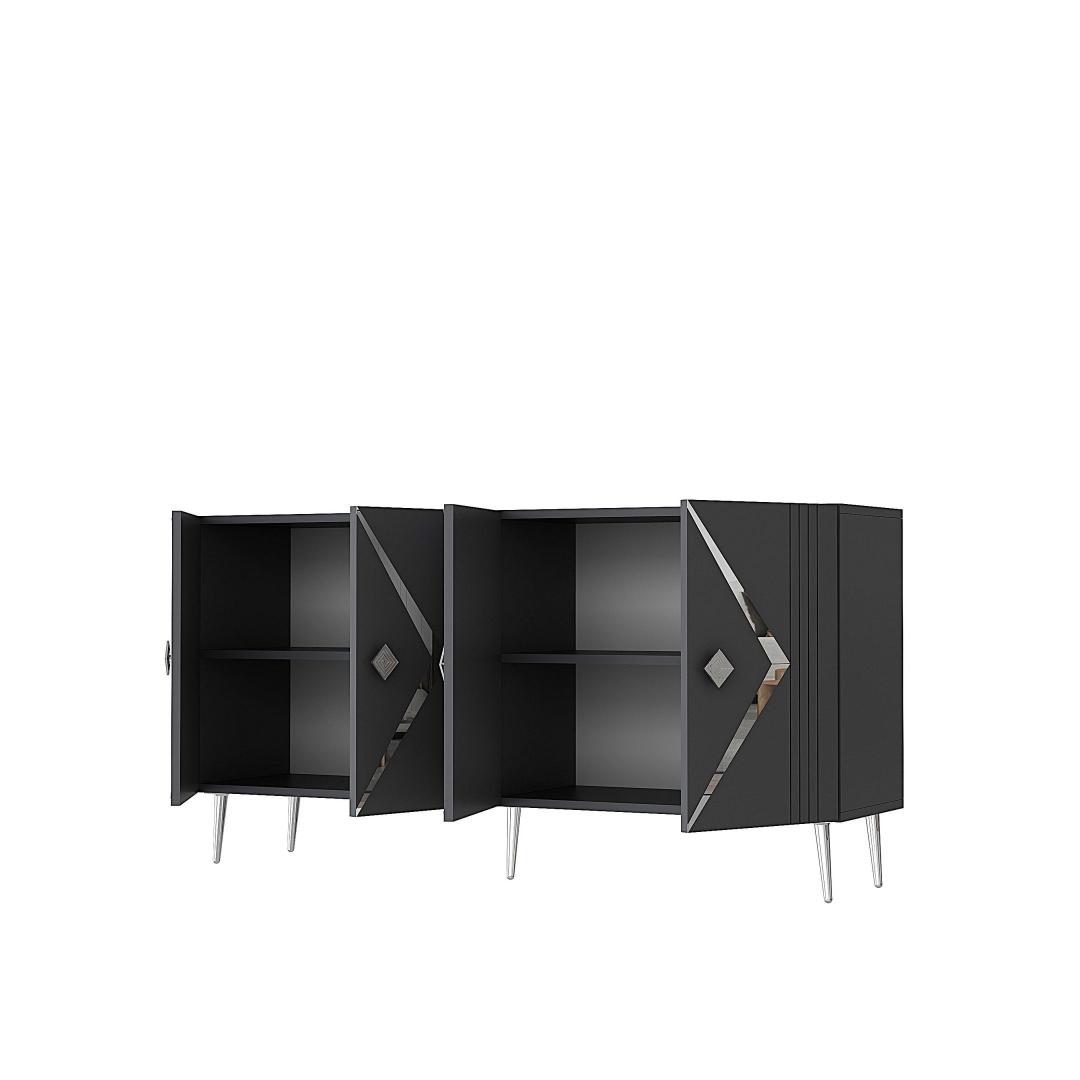 Muuda oma eluruum meie hämmastava konsooliga, mis on valmistatud 100% melamiiniga kaetud puitlaastplaadist. See stiilne ja modernne ese tõstab koheselt iga ruumi stiili, lisades sellele elegantsi ja rafineeritust.Tõsta oma ruumiSelle voolujoonelise disaini ja puhaste joontega on see konsool ideaalne täiendus igasse modernsesse koju. Antratsiidi ja hõbedase värvi kombinatsioon loob silmapaistva kontrasti, mis teeb igas ruumis avalduse.Mitmekülgne ja funktsionaalneSee konsool sisaldab mitmeid riiuleid, pakkudes piisavalt hoiuruumi kõigi sinu oluliste asjade jaoks. Olgu see siis sinu lemmikdekoorielementide väljapanekuks või oma asjade korrastamiseks, see konsool on sama funktsionaalne kui stiilne.Kestlik ja tugevValmistatud 18 mm paksusest melamiiniga kaetud puitlaastplaadist, on see konsool loodud kestma. Tugevad jalad tagavad stabiilsuse ja toe, samas kui võimalus see seina külge kinnitada lisab täiendava turvalisuse.Tehnilised andmed:Materjal: 100% melamiiniga kaetud puitlaastplaatPaksus: 18 mmLaius: 150 cmKõrgus: 75 cmSügavus: 35 cmRiiuli laius: 72 cmRiiuli kõrgus: 27 cmJala kõrgus: 15 cmVärv: Antratsiit ja hõbe Värv: Anthracite Silver