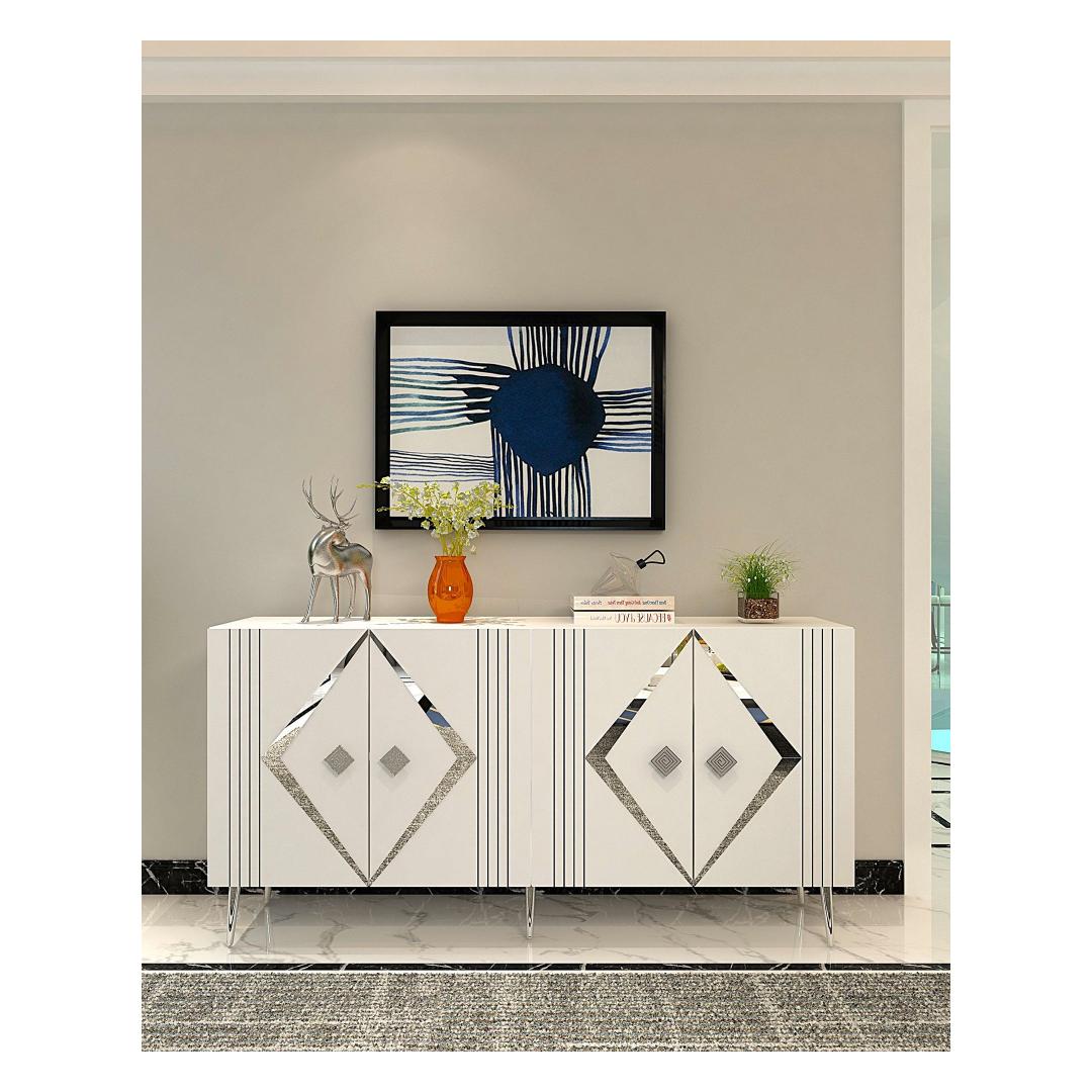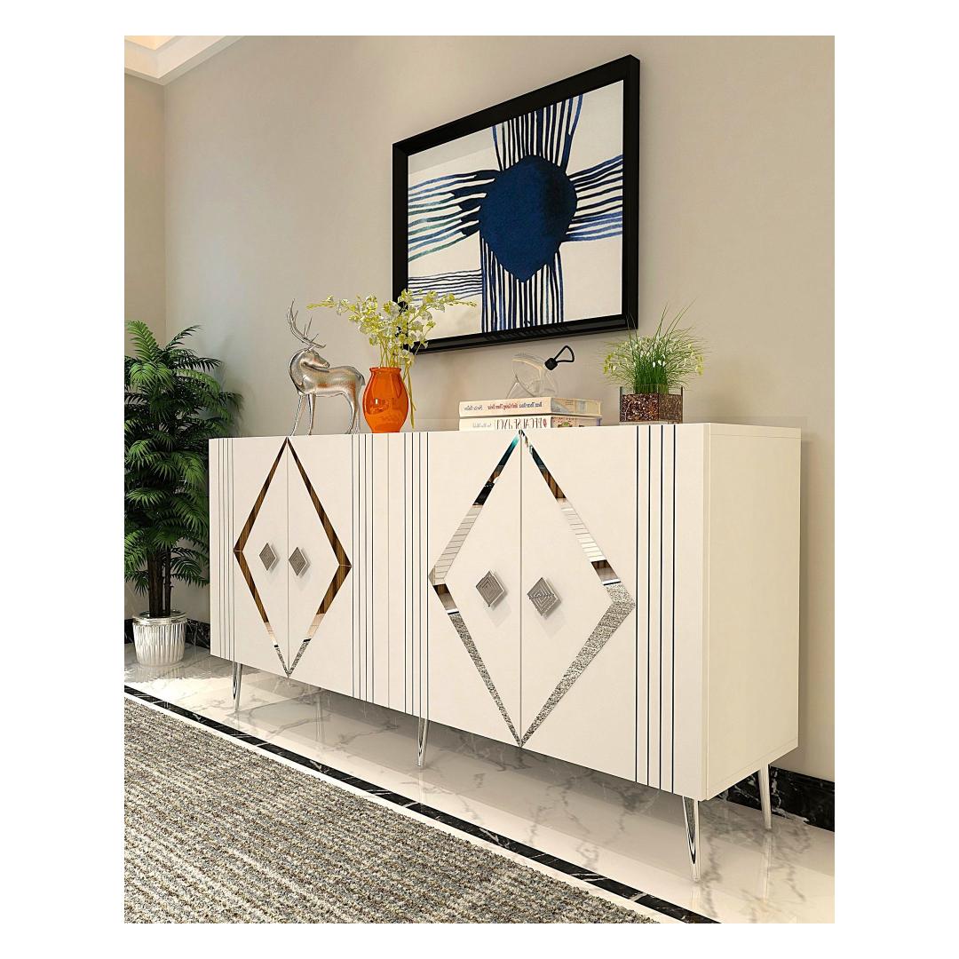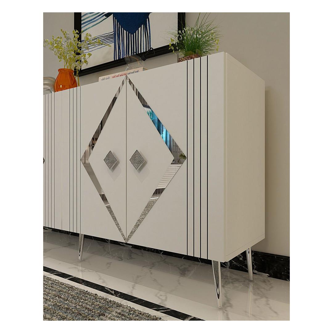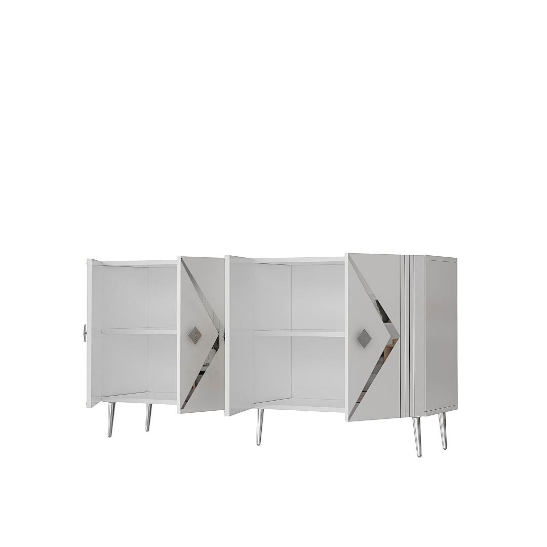 Muuda oma eluruum meie hämmastava konsooliga, mis ühendab funktsionaalsuse ja modernse disaini. 100% melamiinkattega puitlaastplaadist valmistatud konsool on mitte ainult vastupidav, vaid ka stiilne, lisades igasse ruumi elegantsi.Tõsta oma kodu sisustusSelle sujuva valge ja hõbedase värvikombinatsiooniga konsool tõstab koheselt sinu kodu sisustust. Puhtad jooned ja minimalistlik disain teevad sellest mitmekülgse mööblieseme, mis sobib igasuguste stiilidega, alates kaasaegsest kuni traditsioonilise.Rohke hoiuruumPaljude riiulitega varustatud konsool pakub piisavalt hoiuruumi kõigi sinu oluliste asjade jaoks. Olgu need sinu lemmik dekoratiivesemed või soov hoida oma asjad korras, see konsool katab kõik sinu vajadused.Mitmekülgne ja praktilineSeda konsooli saab kinnitada seina külge, muutes selle praktiliseks valikuks väiksematesse ruumidesse. 18 mm paksune puitlaastplaat tagab stabiilsuse ja vastupidavuse, samas kui 15 cm jalad pakuvad piisavalt kõrgust lihtsaks puhastamiseks.Tehnilised andmed:Materjal: 100% melamiinkattega puitlaastplaatPaksus: 18 mmLaius: 150 cmKõrgus: 75 cmSügavus: 35 cmRiiuli laius: 72 cmRiiuli kõrgus: 27 cmJala kõrgus: 15 cmVärv: Valge ja hõbe Värv: White Silver