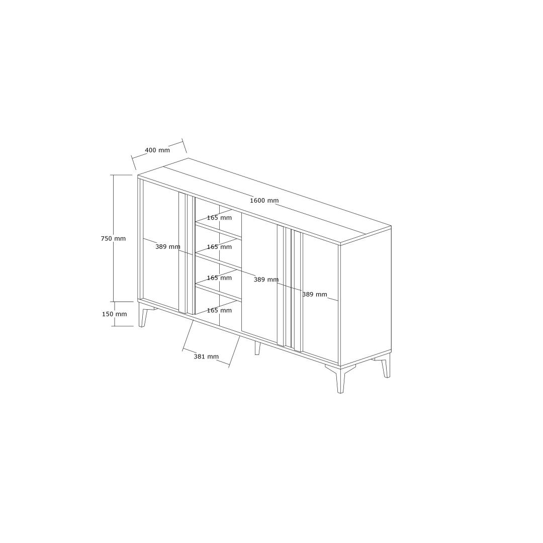 See 160 cm laiune, 90 cm kõrge ja 40 cm sügavune konsool pakub piisavalt ruumi oma kallimate esemete esitlemiseks. Jalgade kõrgus 15 cm lisab elegantsi, tagades samas stabiilsuse ja tasakaalu.