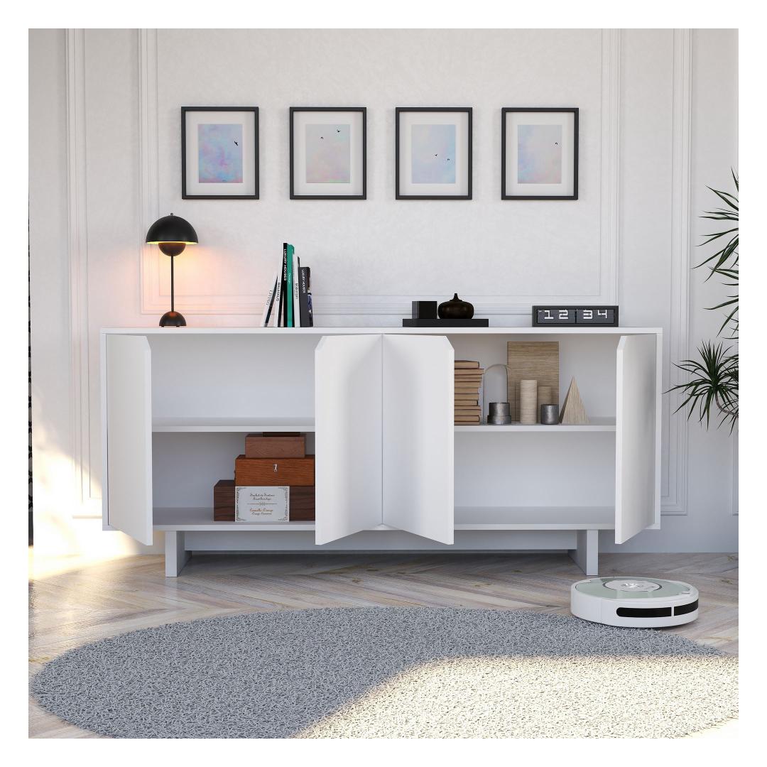 Oma puhaste joonte ja minimalistliku disainiga on see konsool ideaalne stiili ja funktsionaalsuse segu. Valge värv lisab igasse ruumi natuke rafineeritust, samas kui arvukad riiulid pakuvad piisavalt ruumi teie lemmik dekoratiivesemete esitlemiseks.