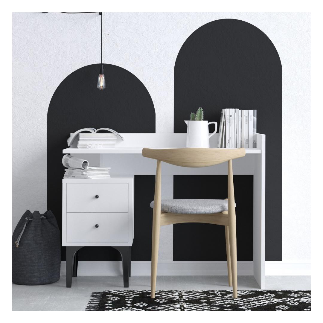 Muuda oma õpingute ruum produktiivsuse pühamuks meie stiilse ja modernse kirjutuslauaga. Valmistatud 100% melamiinkattega puitlaastplaadist, on see laud mitte ainult vastupidav, vaid ka stiilne, lisades igasse ruumi elegantsi.