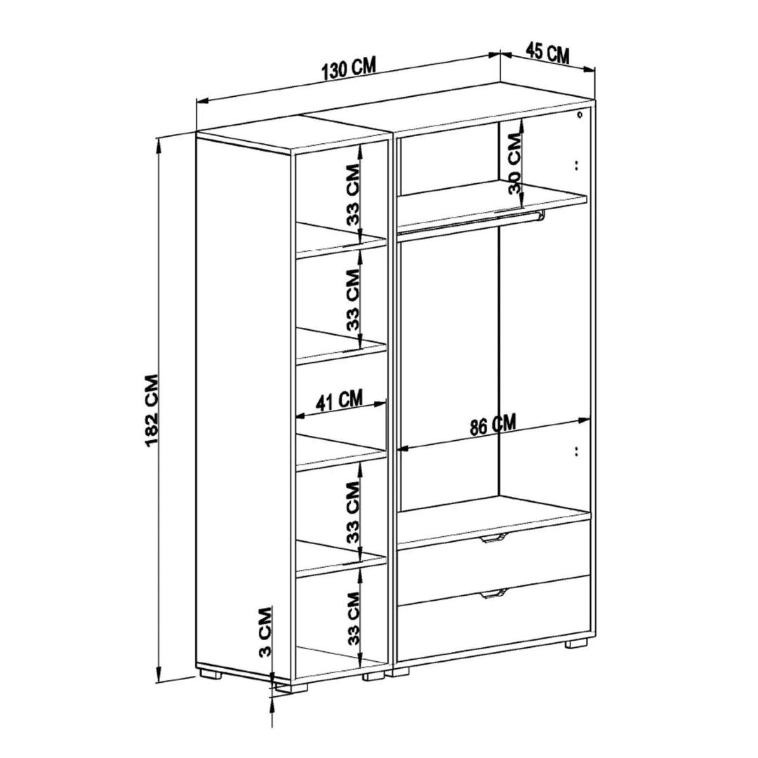 Width: 130 cm Height: 183 cm Depth: 45 cm