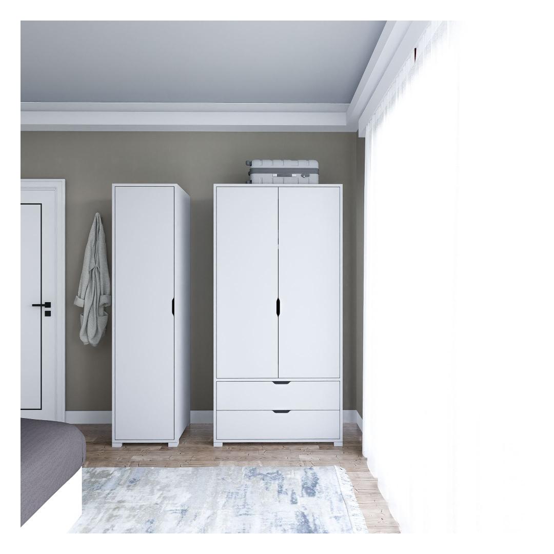 Kas oled väsinud segadusest täis kappidest ja üle voolavatest sahtlitest? Ütle hüvasti kaosale ja tere korraldusele meie kauni riidekapiga! Valmistatud 100% melamiinkattega puitlaastplaadist, on see riidekapp mitte ainult vastupidav, vaid ka stiilne, lisades igasse ruumi elegantsi.Muuda oma ruumiSelle voolujoonelise disaini ja piisava hoiuruumiga on see riidekapp ideaalne lahendus kõigile sinu hoiuvajadustele. Olgu sul vaja oma riideid riputada, kingi hoiustada või lemmikaksessuaare eksponeerida, see riidekapp katab kõik sinu vajadused. Ütle hüvasti segastele tubadele ja tere korrastatud ruumile, mille üle saad uhke olla.Kvaliteet, millele saad toetudaUsume, et peame oma klientidele pakkuma parima kvaliteediga tooteid, seetõttu on see riidekapp valmistatud 100% melamiinkattega puitlaastplaadist. See tagab, et sinu riidekapp kestab aastaid, andes sulle meelerahu, teades, et sinu investeering on kaitstud.Tehnilised andmed:Materjal: 100% melamiinkattega puitlaastplaatPaksus: 18 mmLaius: 130 cmKõrgus: 183 cmSügavus: 45 cmVärv: ValgeRohkelt riiuleid piisava hoiustamise jaoksSaab kinnitada seina külge lisastabiilsuse tagamiseksÄra oota enam, et muuta oma ruumi ja öelda hüvasti segadusele. Tellige oma riidekapp täna ja kogege, millist erinevust see teie kodus teha võib! Värv: White