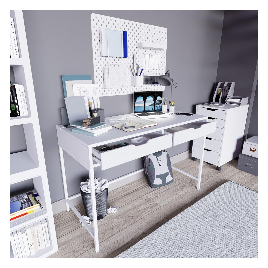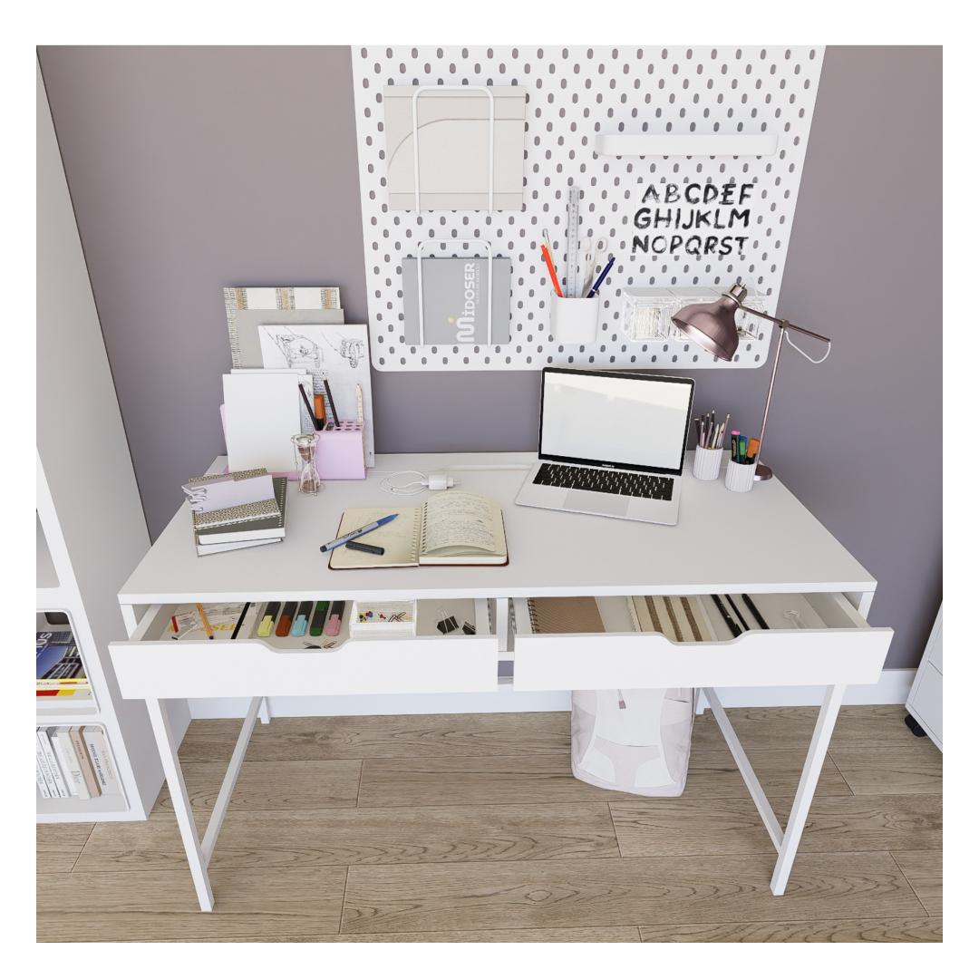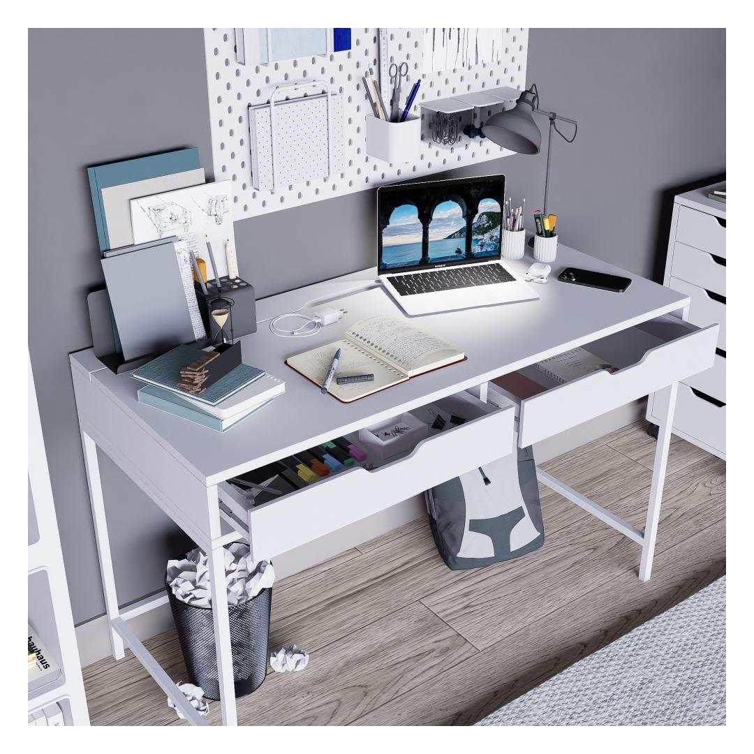 Hüvasti häirete ja ebamugavusega meie õppelaua abil. Selle puhas ja minimalistlik disain loob teile rahustava keskkonna, et saaksite keskenduda ja oma õpingutes silma paista. Avar pind pakub rohkelt ruumi teie raamatute, sülearvuti ja õppematerjalide jaoks, mis muudab organiseerituse ja jälgimise lihtsamaks.