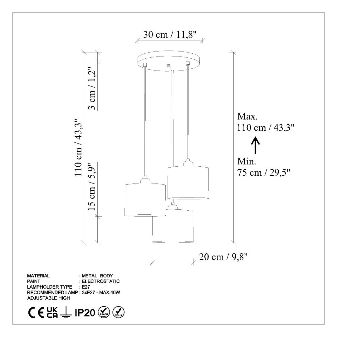 Oma 3 x E27 pistikupesaga pakub see lühter palju valgustust iga ruumi ergutamiseks. Metallkeha tagab vastupidavuse ja pikaealisuse, nii et saate selle tüki ilu nautida veel aastaid. Lisage oma lemmikpirnid, et luua soe ja kutsuv atmosfäär, mis paneb teid kunagi kodust lahkuma.