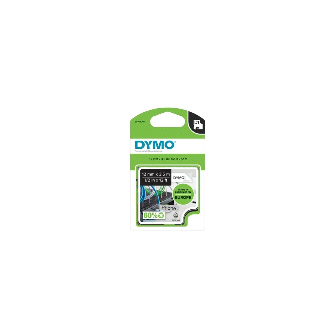 Dymo 16957 (S0718040) D1 Flexible Nylon Tape 12mm x 3.5m, Black on White