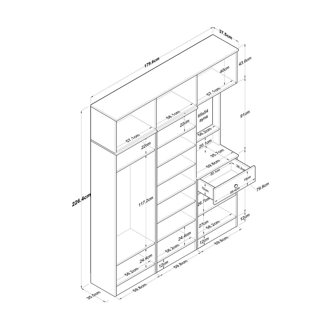 • Mõõdud: Laius: 179,6 cm, Kõrgus: 226,4 cm, Sügavus: 37,5 cm