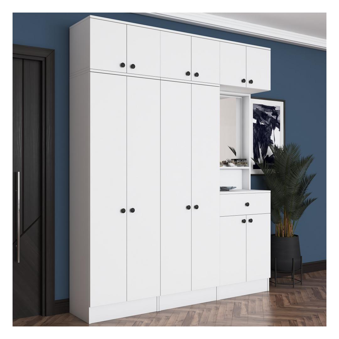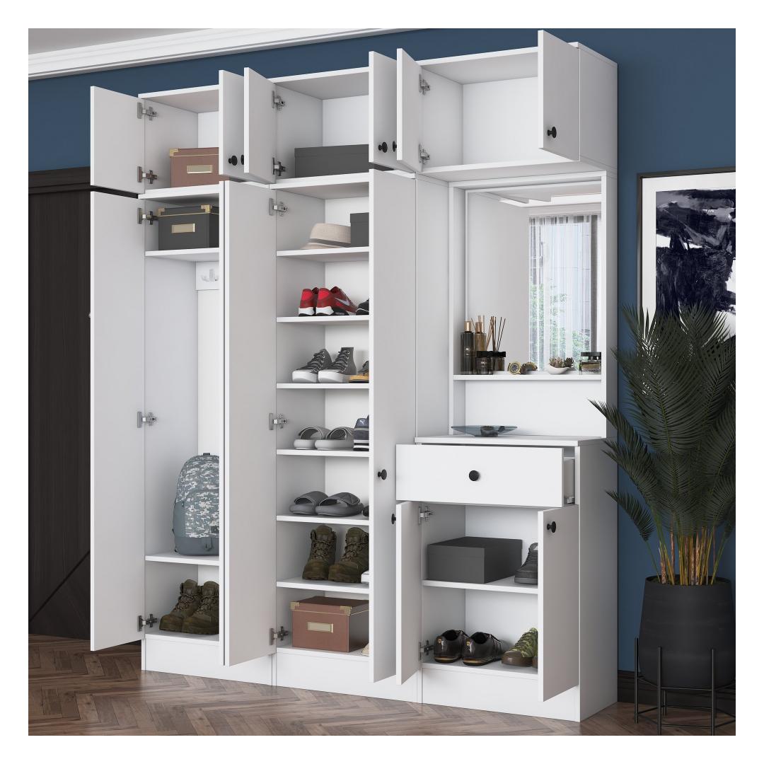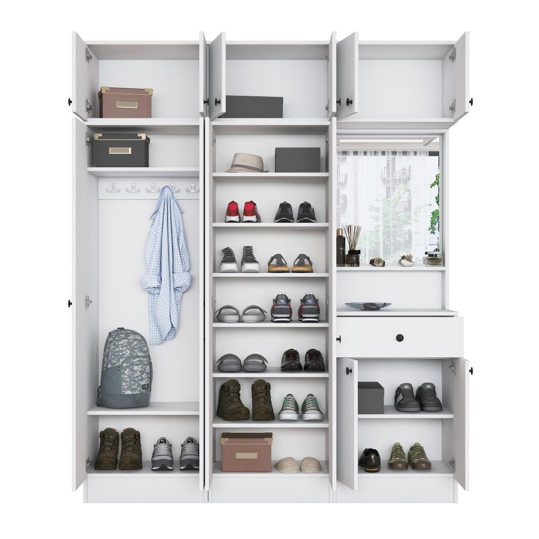 Valmistatud 100% melamiinkattega E1 kvaliteediga puitlaastplaadist, on meie Hall Stand loodud kestma. Selle tugev konstruktsioon tagab, et see talub igapäevast kasutamist, samas kui valge värv lisab igasse ruumi elegantsi.