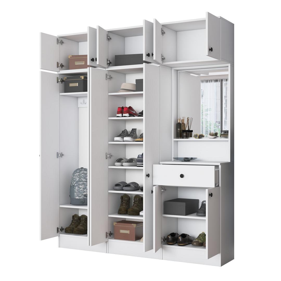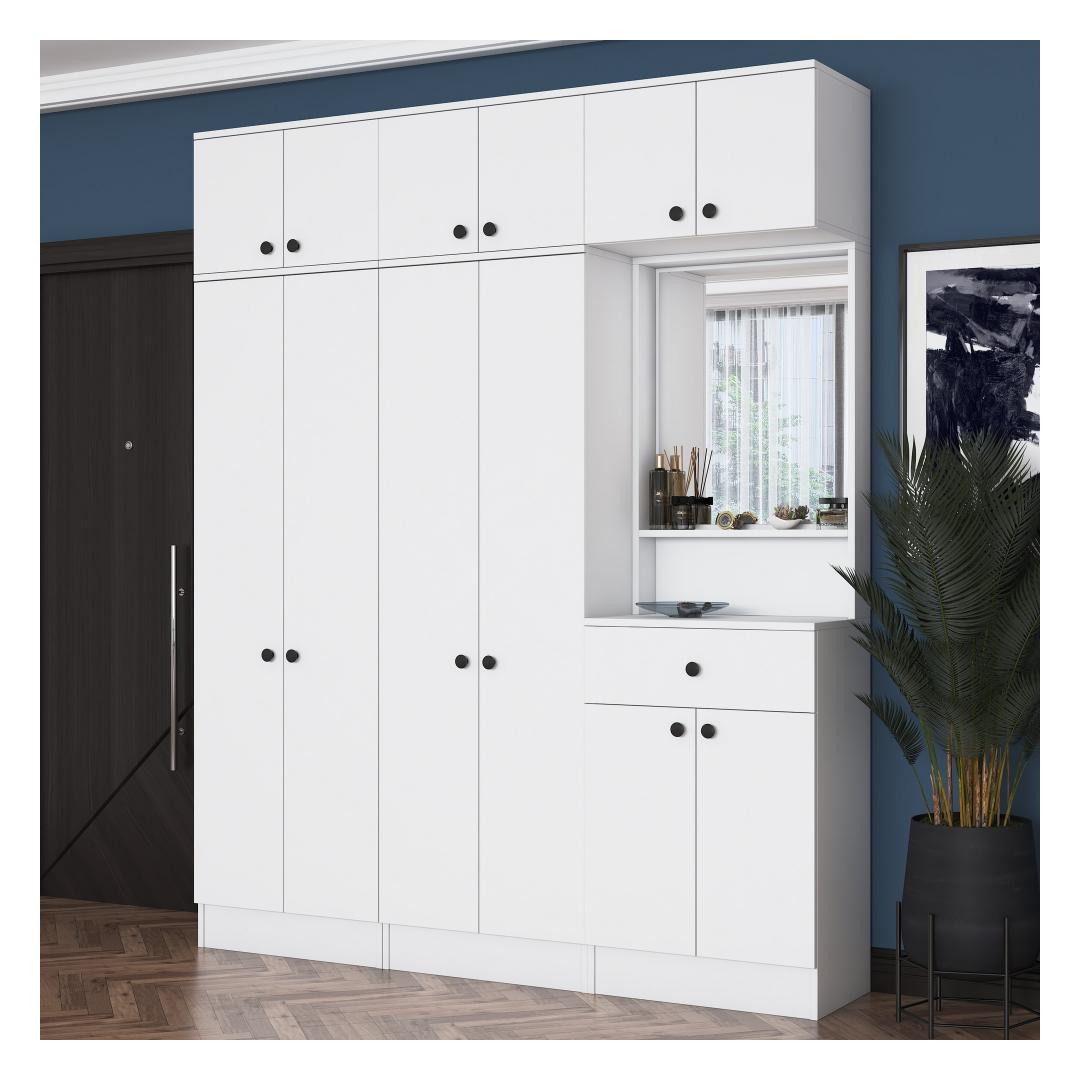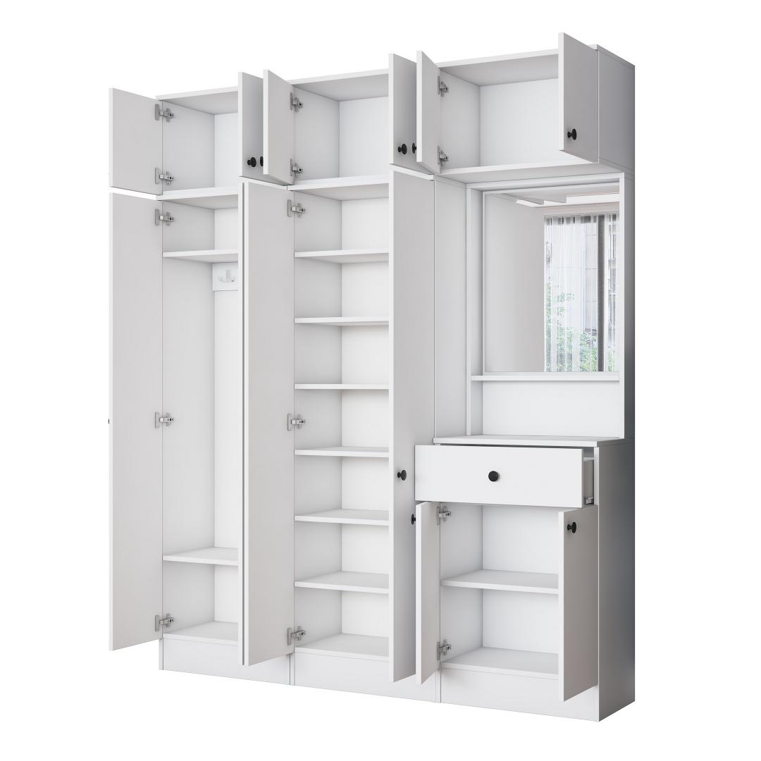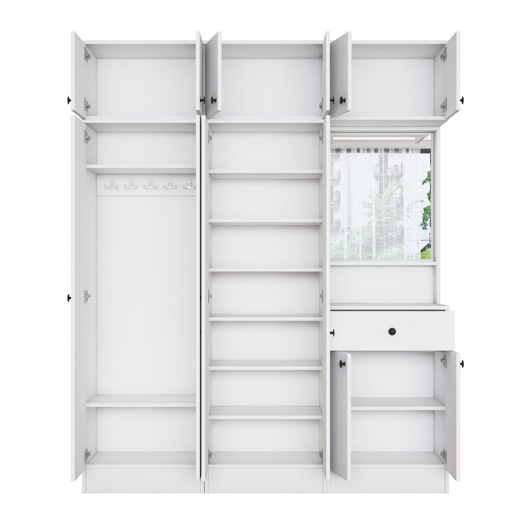 Valmistatud 100% melamiinkattega E1 kvaliteediga puitlaastplaadist, on meie Hall Stand loodud kestma. Selle tugev konstruktsioon tagab, et see talub igapäevast kasutamist, samas kui valge värv lisab igasse ruumi elegantsi.