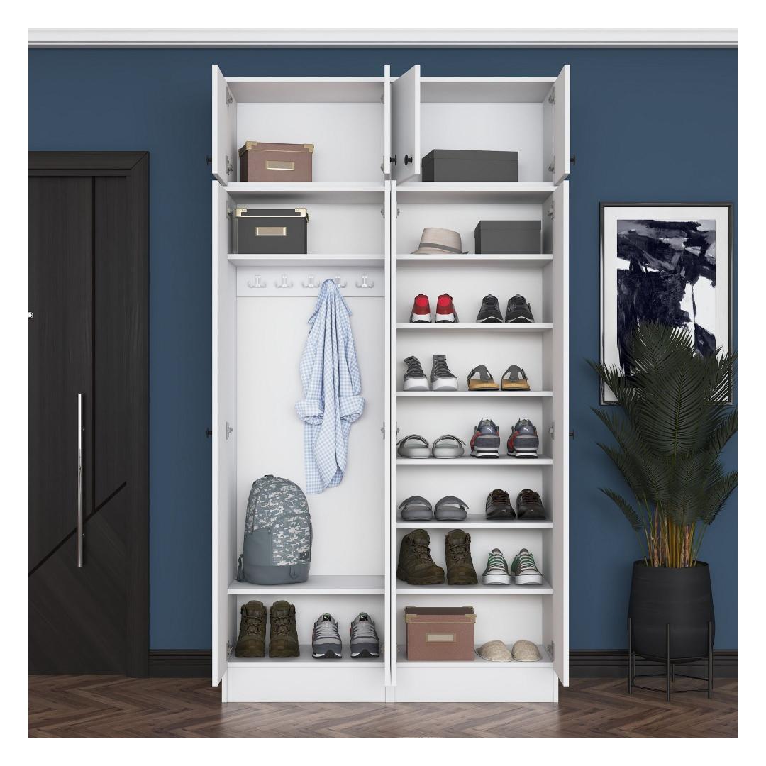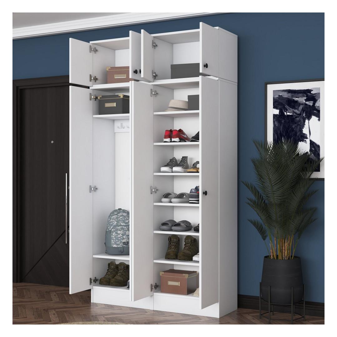 Kas oled väsinud sellest, et tuled koju segasele esikule, kus mantlid ja kingad on laiali visatud? Ütle hüvasti kaosale ja tere korraldusele meie kauni esikupuu abil. Valmistatud 100% melamiinkattega E1 kvaliteediga puitlaastplaadist, on see esikupuu mitte ainult vastupidav, vaid ka stiilne, lisades elegantsi sinu sissekäigule.