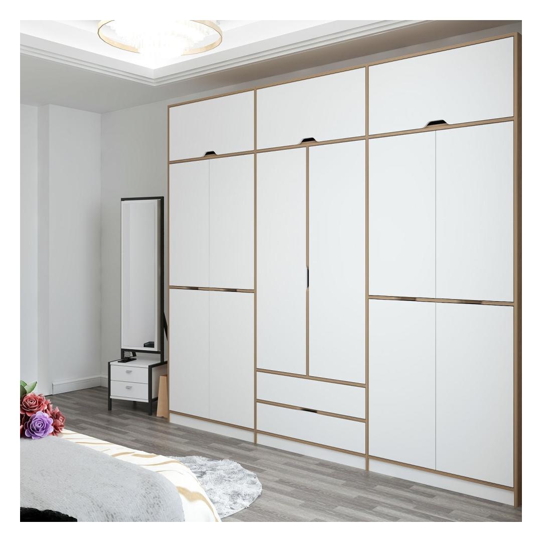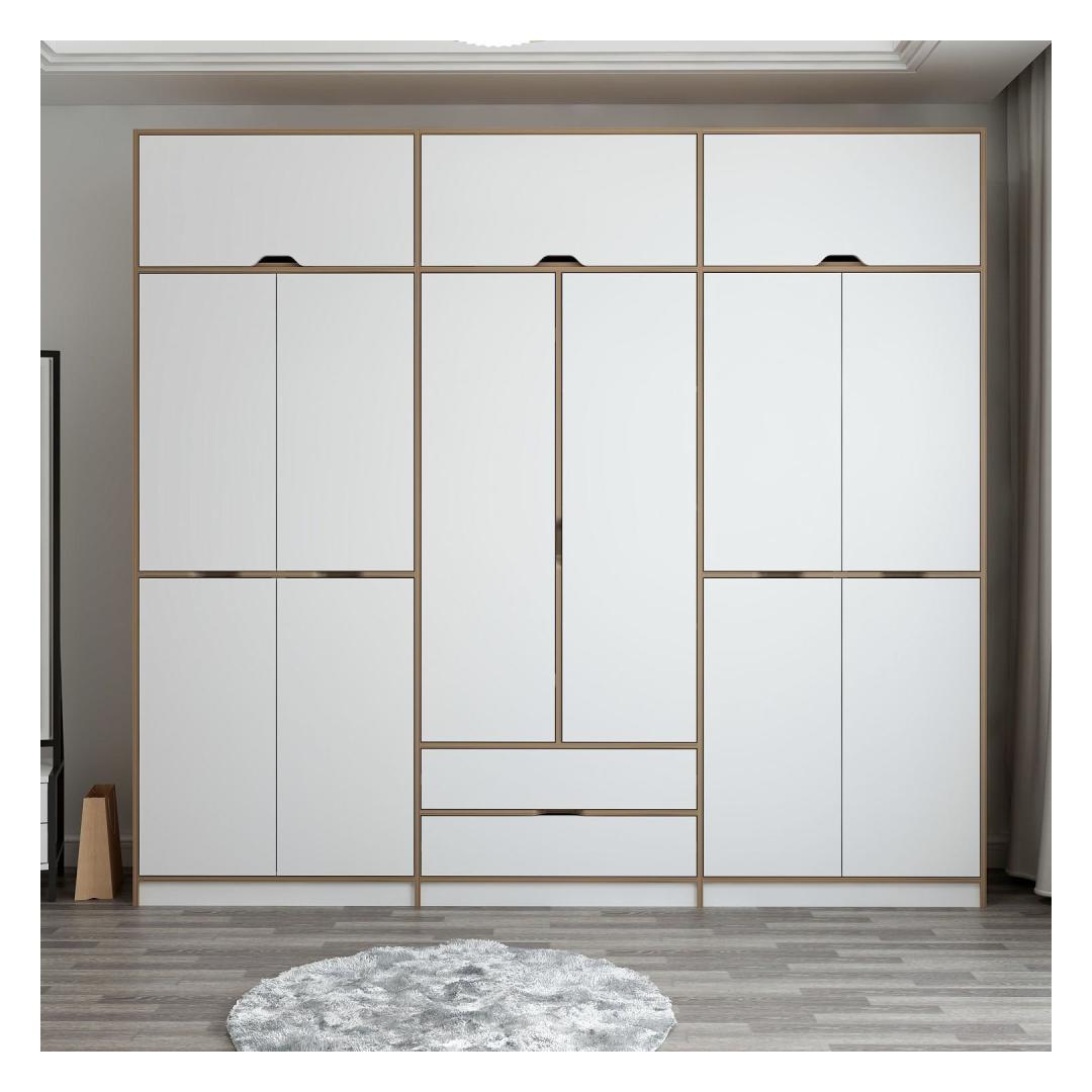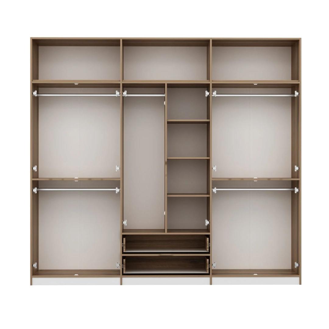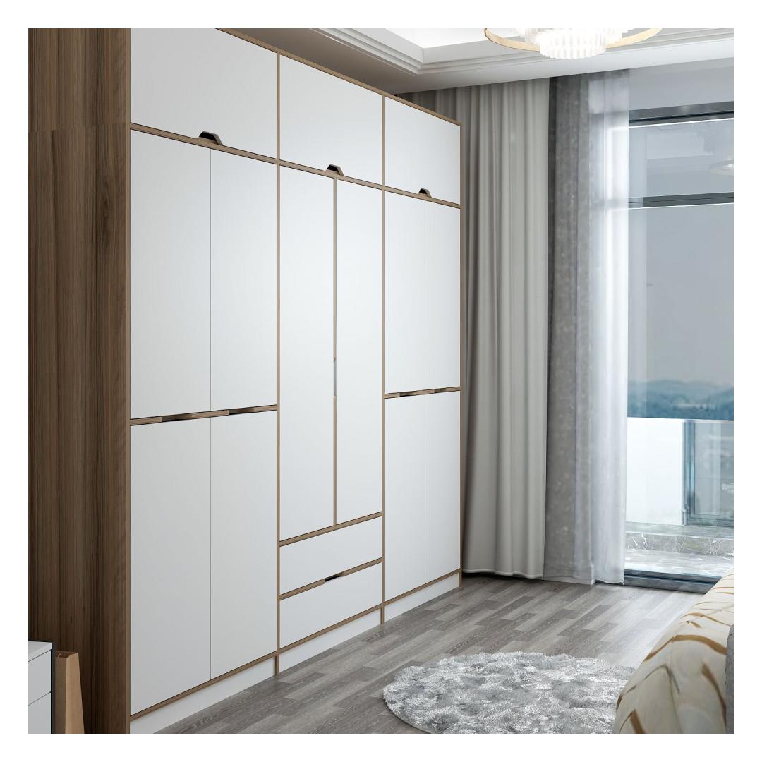 Selle riidekapi klanitud disain, mis sisaldab valgete ja dore -värvide kombinatsiooni, tõstab kohe iga ruumi ilme. Ükskõik, kas asetate selle oma magamistuppa, koridori või riietusruumi, teeb see riidekapp kindlasti avalduse.