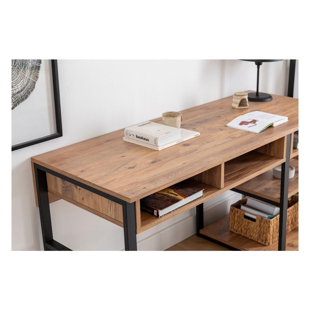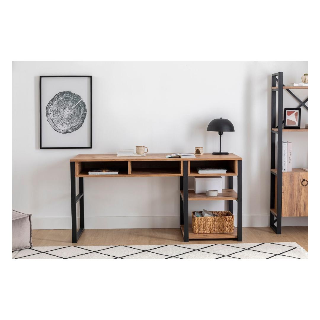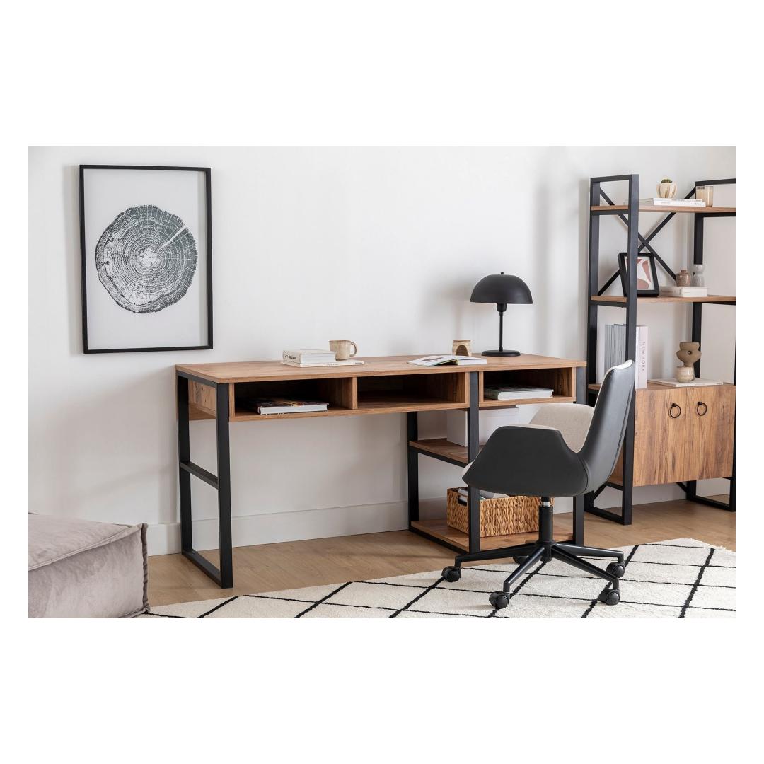 Meie õppetöölaud, mis on varustatud pähklipuu ja musta värvi elegantse kombinatsiooniga, lisab igale õpperuumile elegantsust. Tööstuslik kontseptsioon toob kaasa moodsa ja trendika meeleolu, mis muudab selle ideaalseks täienduseks teie koju või kontorisse. Laske oma loovusel voolata, kui sukeldute stiilsesse ja inspireerivasse keskkonda.
