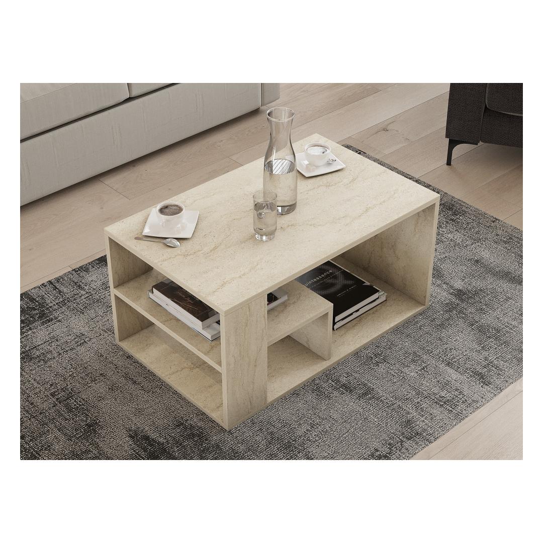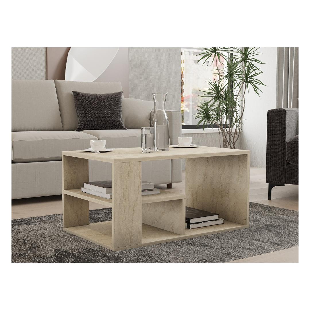 Muuda oma eluruum meie uimastava travertiinist kohvilaudaga. See 100% melamiiniga kaetud puitlaastplaadist valmistatud kohvilaud ei ole mitte ainult vastupidav, vaid ka uskumatult stiilne.