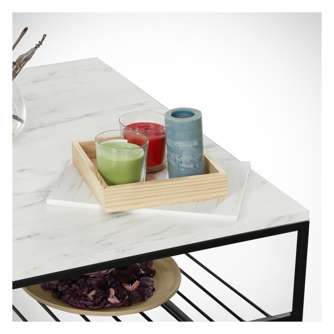 See ülima täpsusega valmistatud kohvilaud on valmistatud 100% melamiiniga kaetud puitlaastplaadist, mis tagab vastupidavuse ja pikaealisuse. 18 mm paksus lisab tugevust, muutes selle usaldusväärseks mööbliesemeks, mis peab vastu. 15 x 15 mm suurused metalljalad on kaetud elektrostaatilise pulbervärviga, mis tagab elegantse ja kriimustuskindla viimistluse.