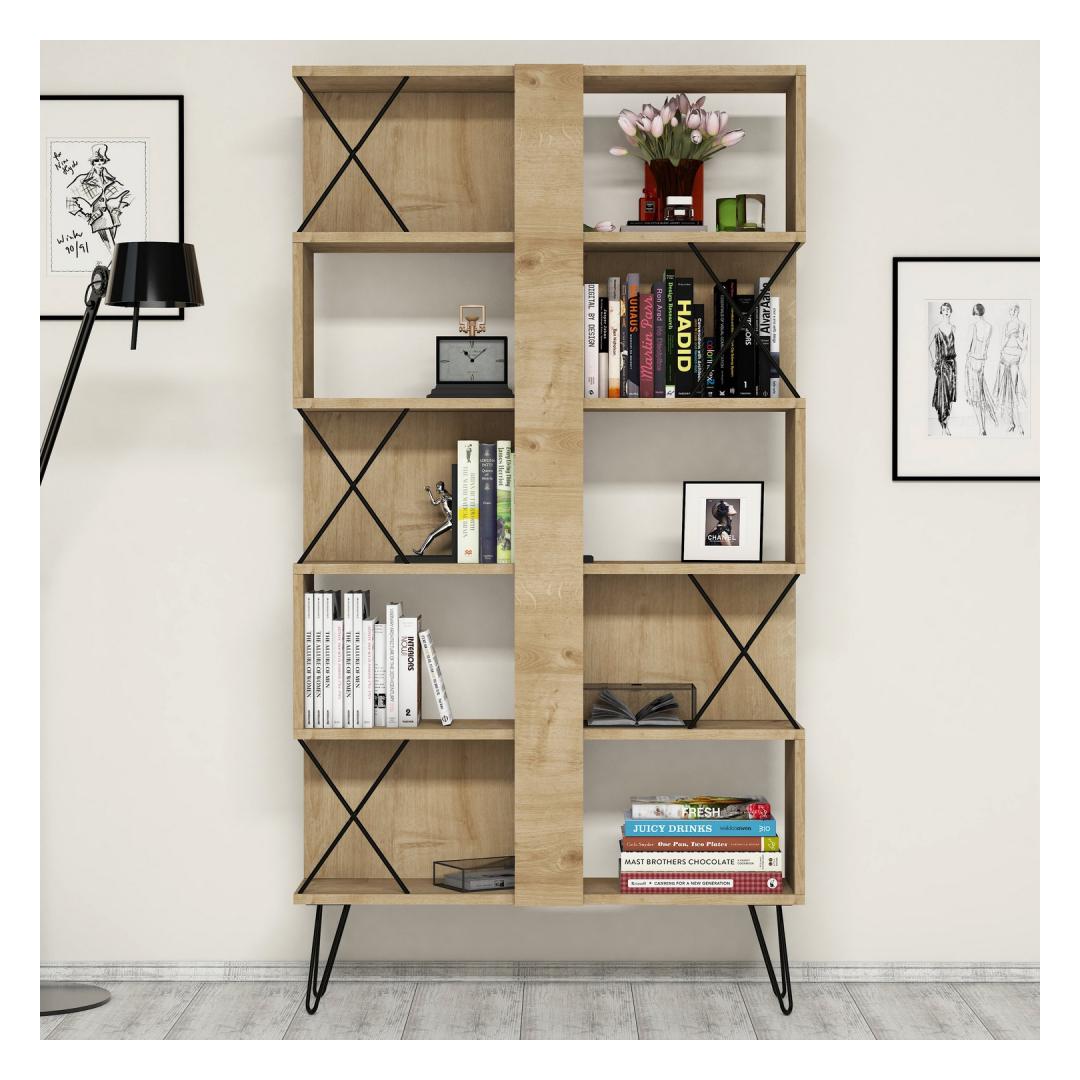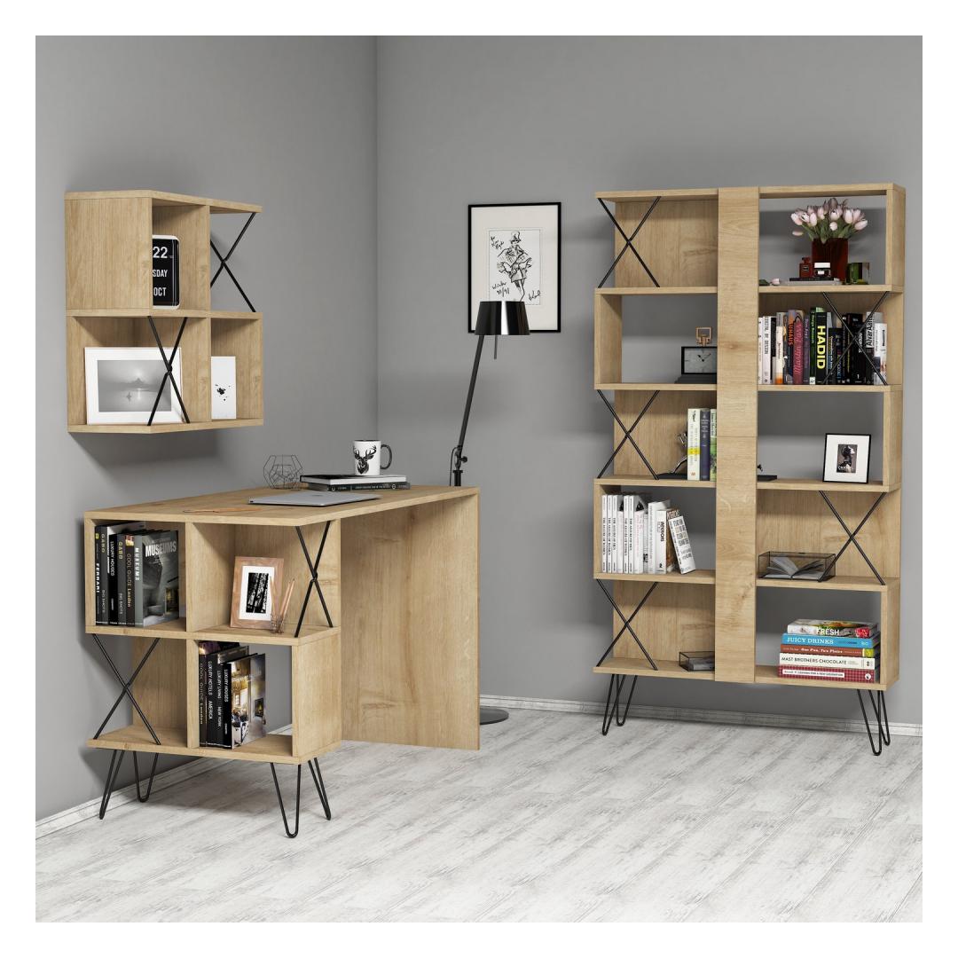 Tamme ja musta värvi kombinatsioon annab sellele töölauale ja raamaturiiulile kaasaegse ja tööstusliku välimuse, mis muudab selle igas ruumis silmapaistvaks esemeks. Kerge disain ja puhtad jooned lisavad teie töö- või kontoriruumi elegantsust.