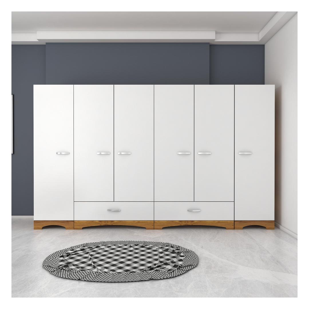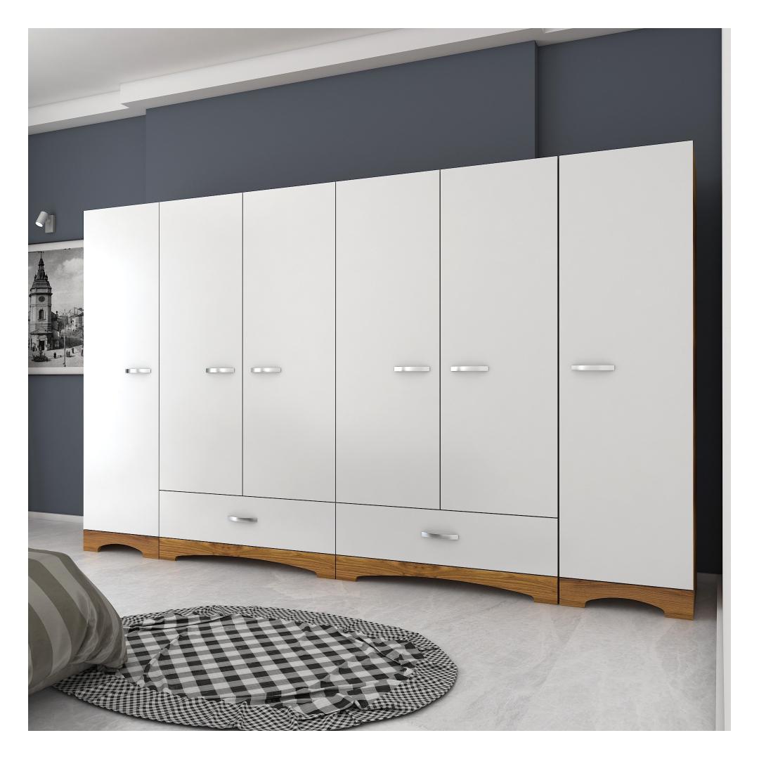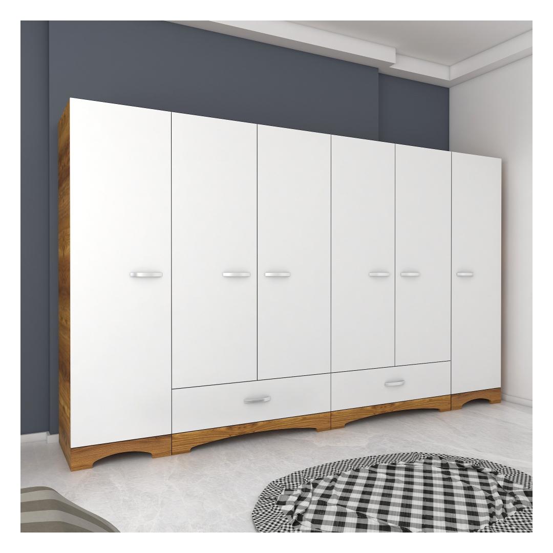 Valge ja pähklipuu värvi kombinatsioon annab sellele riidekapile kaasaegse ja rafineeritud välimuse. See sulandub vaevata mis tahes interjööri stiiliga, lisades teie ruumile elegantsi. Olenemata sellest, kas teil on kaasaegne või traditsiooniline sisekujundus, see garderoob sobib sujuvalt.