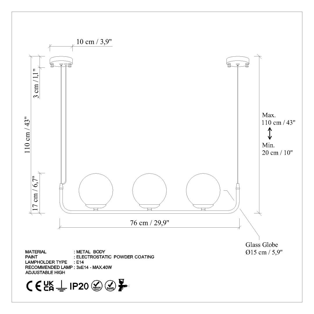 Socket Type: 3 x E 14 Max 40 W