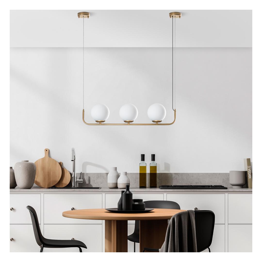 Lühtril on kauni kuldviimistlusega klanitud metallkere, mis lisab teie kodukaunistusele pisut glamuuri. Kolmeosaline korgi läbimõõt 15 cm loob igaüks silmatorkava visuaalse mõju, samas kui reguleeritav kõrgus võimaldab teil kohandada oma ruumi sobiva ilme.
