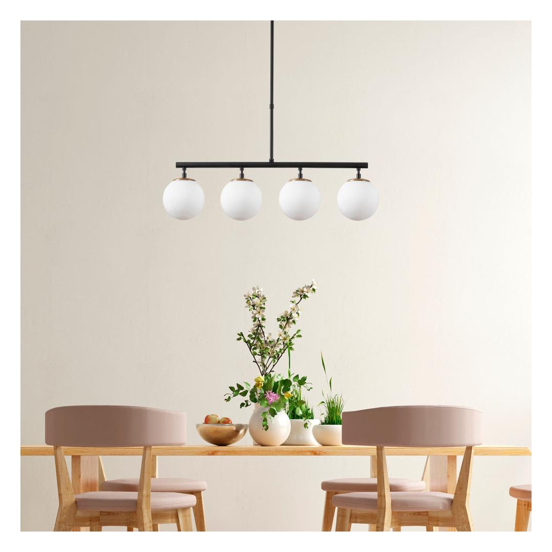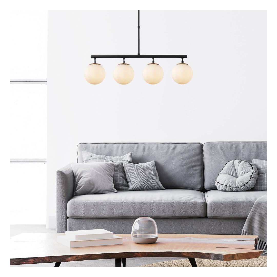 Lühtri mustast, kuldsest ja valgest koosnev värviskeem sulandub vaevata kokku, et luua harmooniline ja pilkupüüdev disain. See kehastab suurepäraselt modern-novaalset, tööstuslikku ja skandinaavia kontseptsiooni, muutes selle mitmekülgseks täienduseks igasse interjööri.