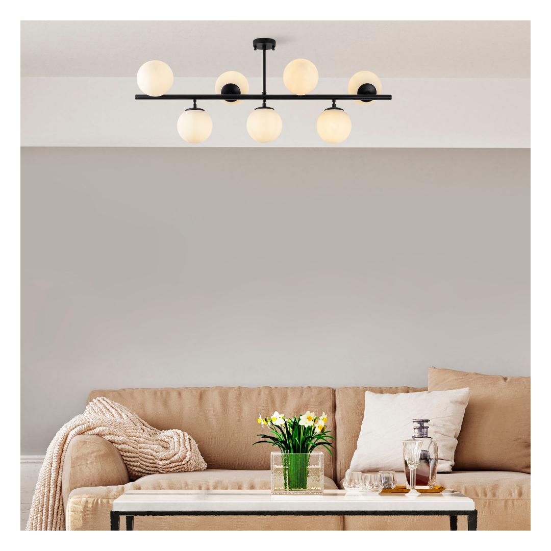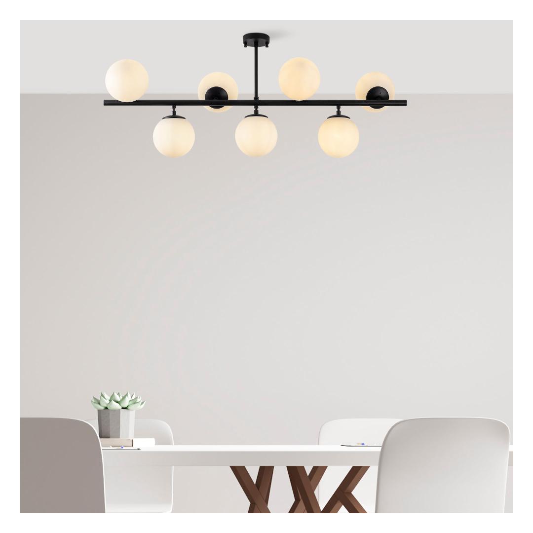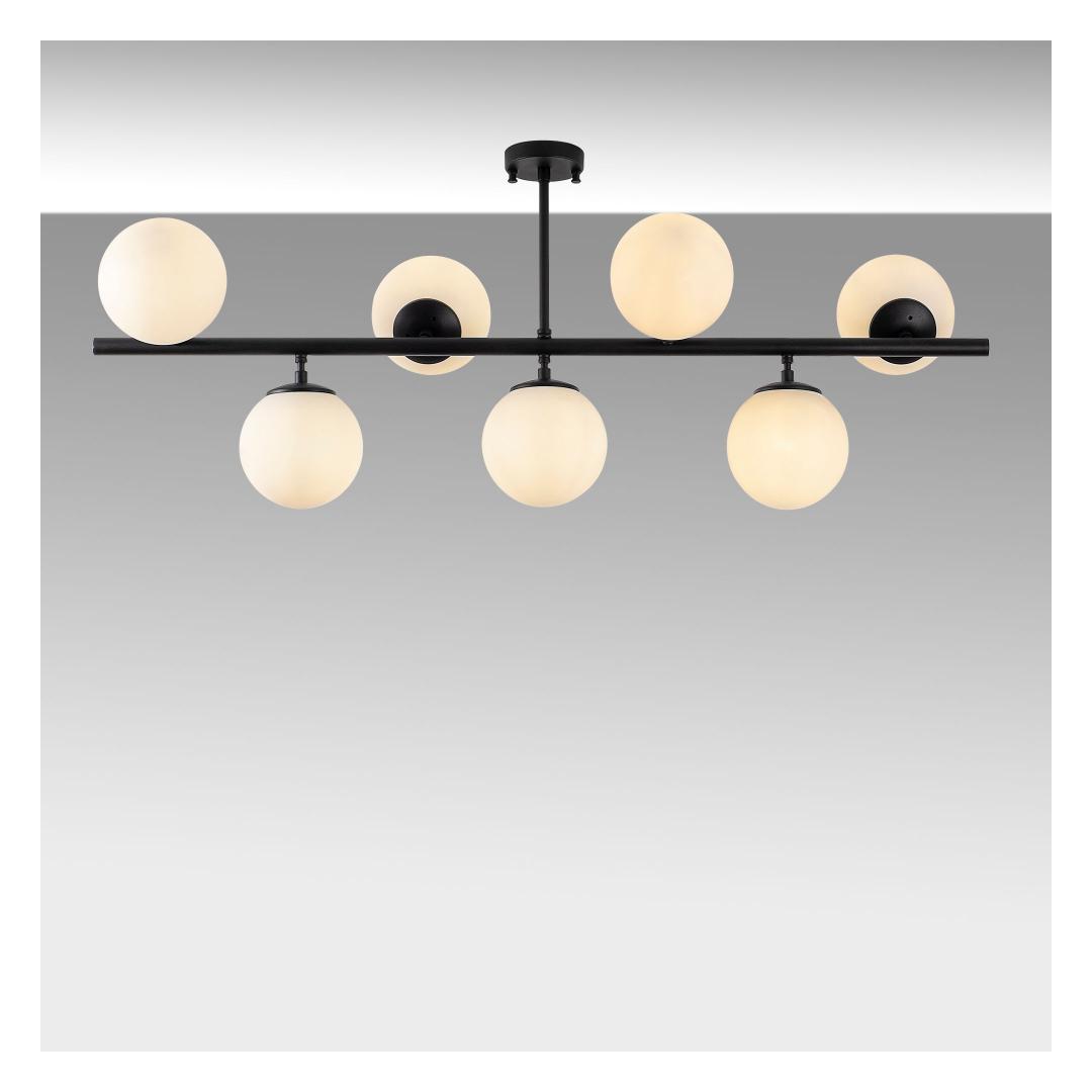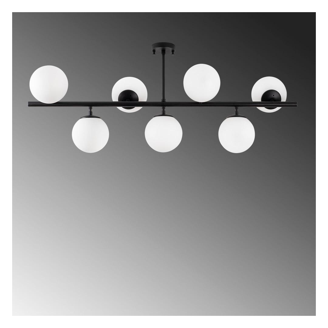 Muuda oma ruum paeluvaks meistriteoseks meie uimastava musta lühtriga. See peen tükk on loodud emotsioonide tekitamiseks ja lummava atmosfääri loomiseks, mis jätab teie külalised imestama. Tõstke oma ruumi ülesOma elegantse ja moodsa disainiga on see lühtri ideaalne täiendus igasse kaasaegsesse või tööstuslikust inspireeritud ruumi. Täismust värv lisab elegantsust ja elegantsi, samas kui unikaalne kuju ja keerulised detailid teevad sellest tõelise väljapaistva eseme.Päratu käsitööndusSee ülima tähelepanuga detailidele valmistatud lühtri metallkorpus tagab vastupidavuse ja pikaealisuse. Klaaskork lisab elegantsi, samas kui metallist alusplaat tagab stabiilsuse ja toe. Loo maagiline atmosfäärValgustage oma ruumi pehmete ja soojade sädemetega, mida kiirgavad seitse e14-pirni. Lühtri suurus 113 x 40 x 46 cm teeb sellest täiusliku fookuspunkti igasse ruumi, olgu see siis teie söögituba, elutuba või magamistuba. Tehnilised üksikasjad:Metallist korpus tagab vastupidavuseKlaaskork lisab elegantsustMetallist alusplaat stabiilsuse ja toe tagamiseksKorki läbimõõt: 15 cm (7 tükki)Alusplaadi läbimõõt: 12 cmAlusplaadi kõrgus: 3 cmIP20 klassifikatsioon ohutuse tagamiseksPistikupesa tüüp: 7 x E14 Max 40 WVärv: mustKogemused ja iluHellitage meie musta lühtri ilu ja võlu. Selle kütkestav disain ja laitmatu käsitöö muudab iga ruumi elegantsi ja stiili paradiisiks. Ärge jätke kasutamata seda võimalust luua oma koju tõeliselt maagiline atmosfäär. Tellige oma juba täna ja laske lummusel alata. Värv: Black