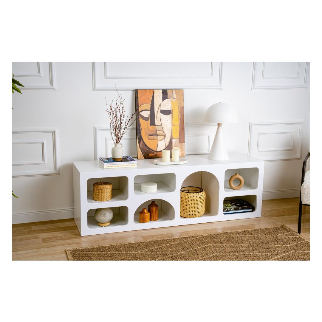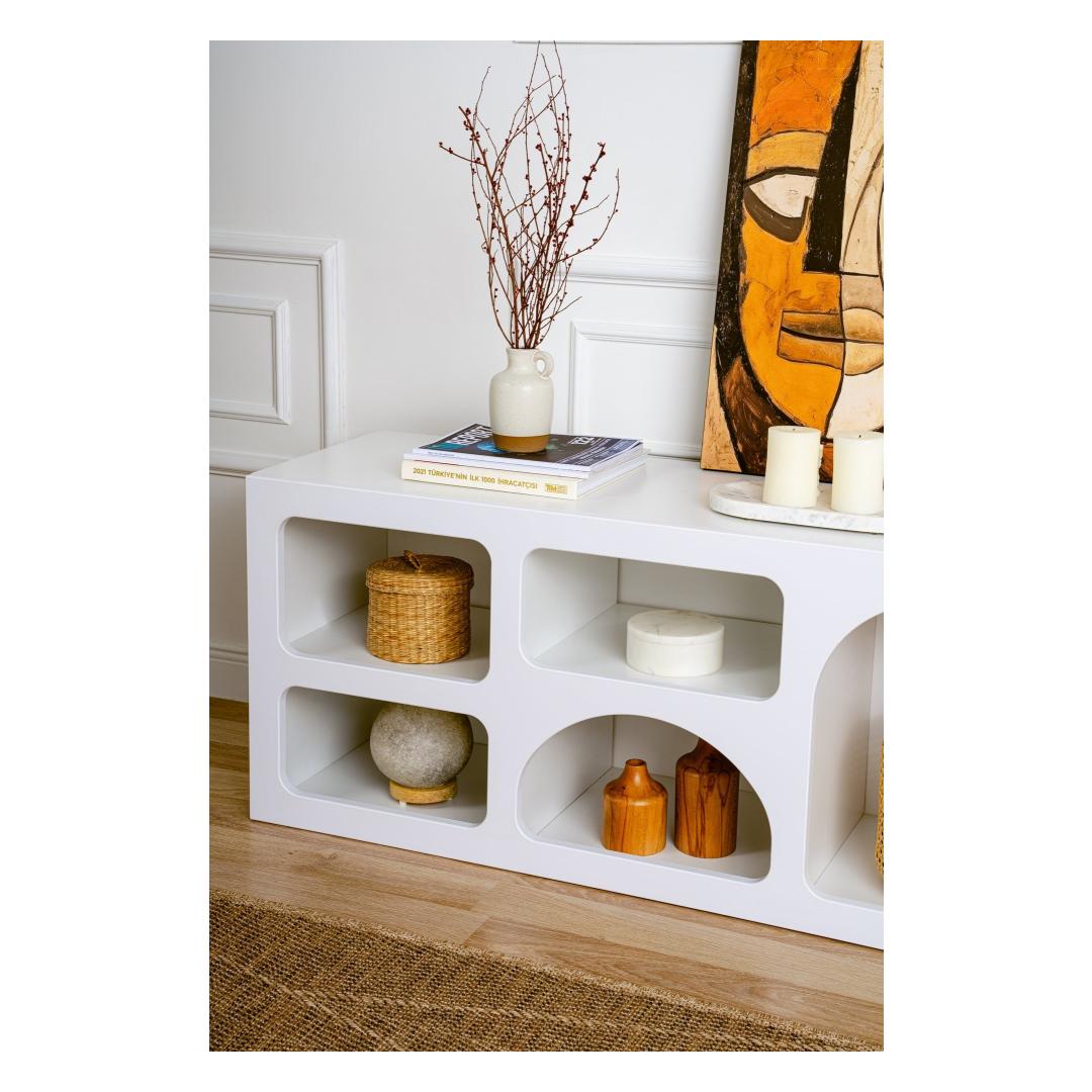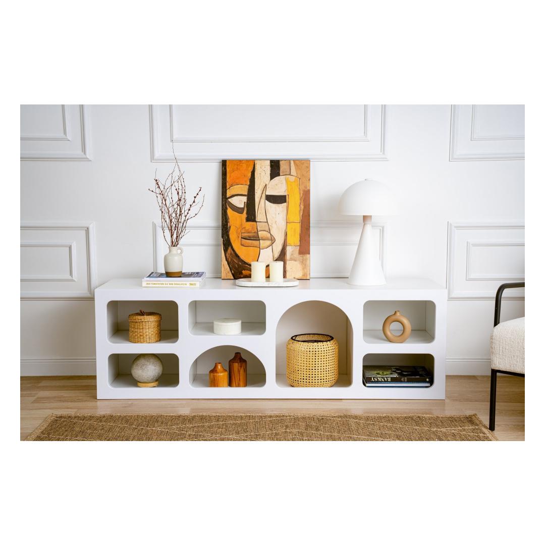 Muuda oma eluruumi meie kauni valge konsooliga, mis on valmistatud 100% melamiiniga kaetud puitlaastplaadist. Selle stiilne disain ja ühtlane värv toovad igasse ruumi modernsuse ja uuenduslikkuse.Tõsta oma kodu sisekujundustLisa oma koju elegantsi ja rafineeritust selle kauni disainiga konsooliga. Puhtad jooned ja minimalistlik esteetika teevad sellest ideaalse lisandi igasse kaasaegsesse eluruumi.Mitmekülgne ja funktsionaalne160 cm laiuse, 51 cm kõrguse ja 40 cm sügavusega konsool pakub piisavalt hoiuruumi kõigi sinu oluliste asjade jaoks. Olgu see elutoas, koridoris või magamistoas, see tõstab koheselt sinu kodu välimust.Kestlik ja kvaliteetneValmistatud 100% melamiiniga kaetud puitlaastplaadist, on see konsool loodud kestma. 18 cm paksus lisab sellele vastupidavust, tagades, et see peab vastu ajale.Tehnilised andmed:Materjal: 100% melamiiniga kaetud puitlaastplaatPaksus: 18 cmSuurus: Laius: 160 cm, Kõrgus: 51 cm, Sügavus: 40 cmVärv: Valge Värv: White