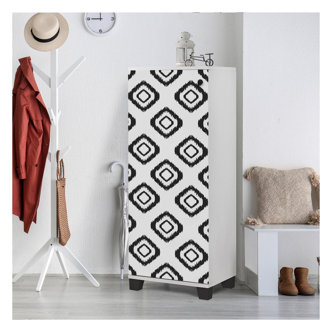 100% melamiiniga kaetud puitlaastplaadist valmistatud meie kingakapp ei ole mitte ainult vastupidav, vaid väljendab ka ajatut elegantsi, mis tõstab iga ruumi esteetikat. Elegantne valge ja must värvikombinatsioon lisab elegantsust, mistõttu sobib see ideaalselt nii moodsasse kui ka traditsioonilisse interjööri.