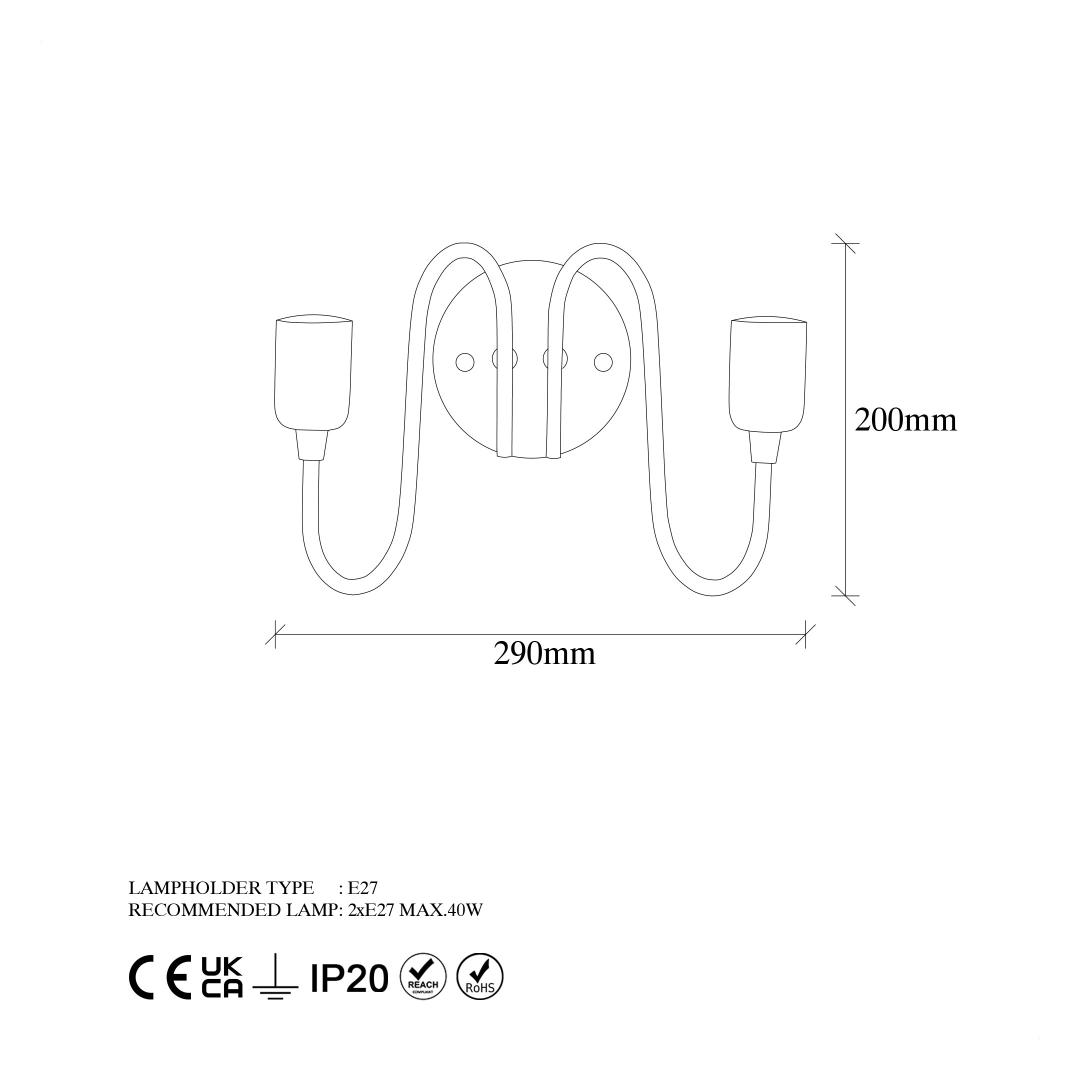 Socket Type: 2 x E 27 Max 40 W