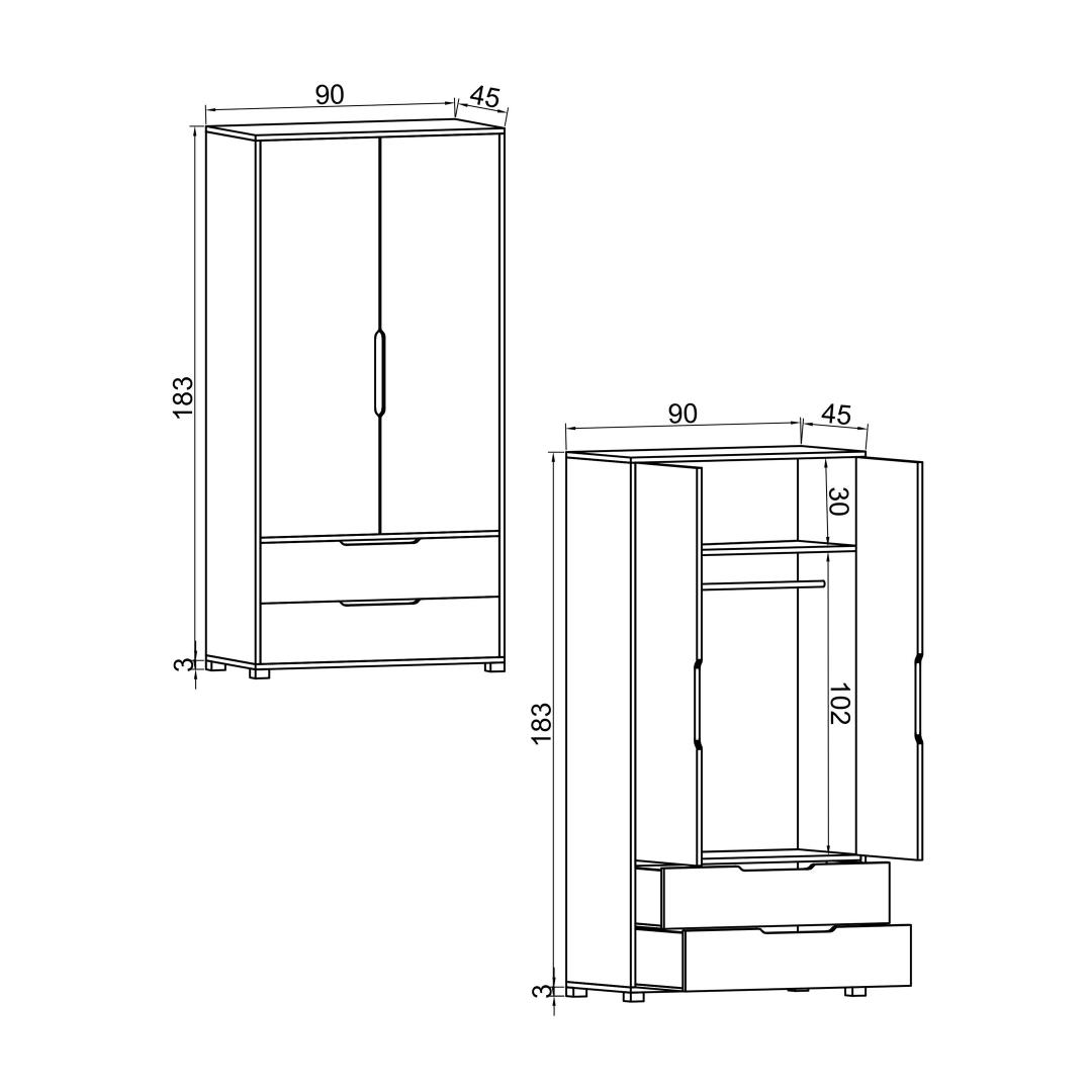 Width: 90 cm Height: 183 cm Depth: 45 cm